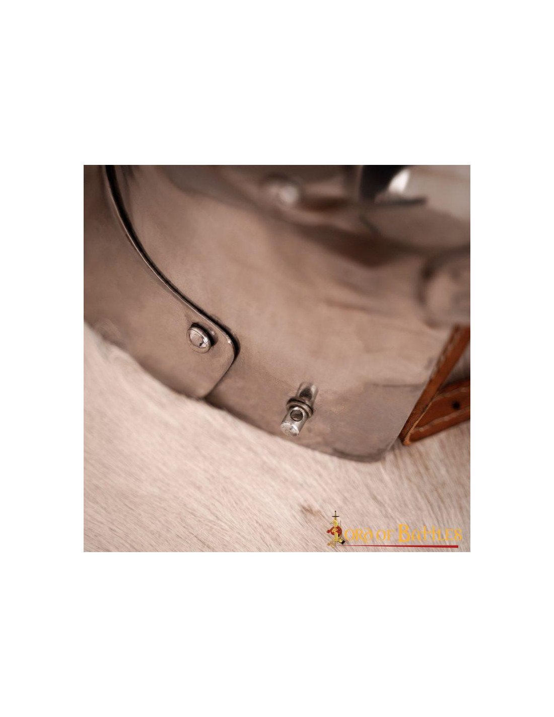 Sallet Italiano-hjelmen er designet og håndlavet af 16-gauge blødt stål, hvilket gør den til et stærkt og holdbart stykke, der vil modstå de tungeste angreb i kamp. Og hvis du leder efter endnu mere styrke, er den også tilgængelig i 14 gauge blødt stål, så lad os det vide, så sørger vi for det for dig.
