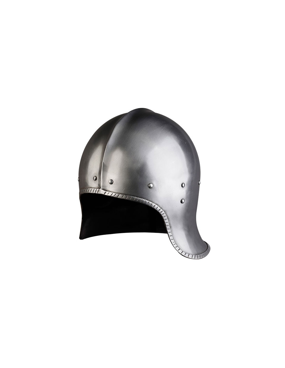 Sallet Franz middelalderhjelm er det perfekte supplement til enhver elsker af middelalderen. Dens åbne og nittede design giver den et autentisk og realistisk look, der straks transporterer dig til fortidens kampe.