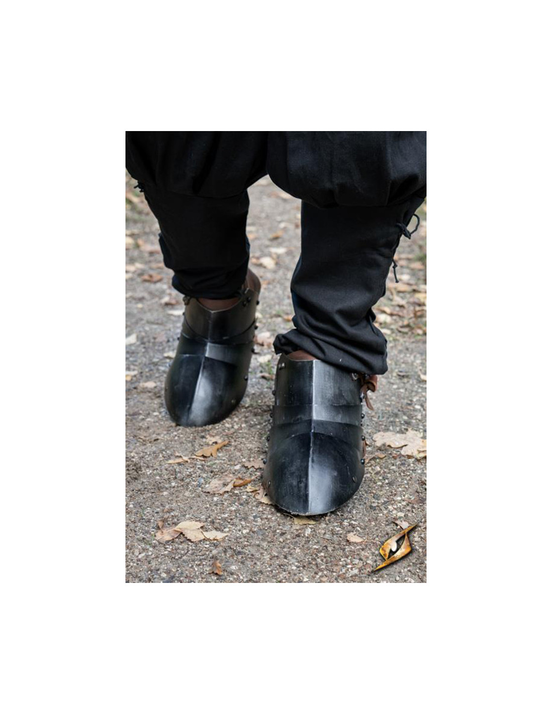 Ud over deres funktionalitet fremkalder designet af disse escarpes en ægte middelalderlig stemning, der transporterer dig direkte til en tid med riddere og episke kampe. Deres sorte finish giver dem et karakteristisk og elegant udseende. Derudover fås de i tre størrelser for at sikre en perfekt og komfortabel pasform til enhver kriger.