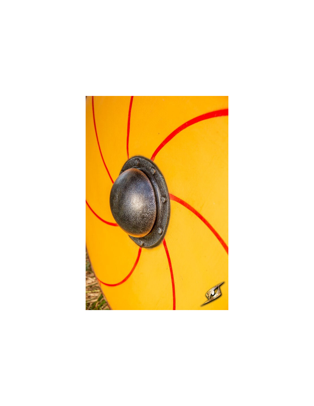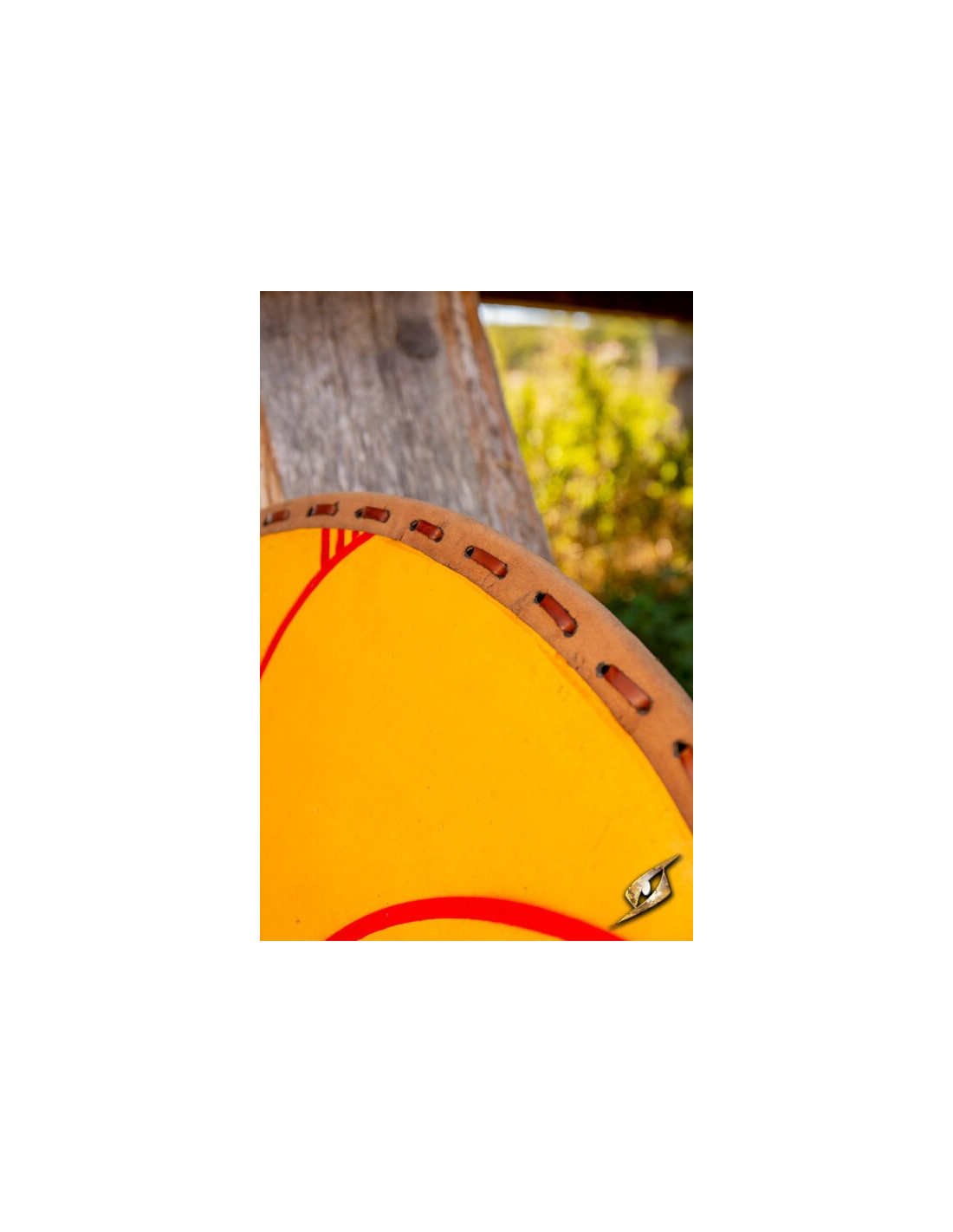 Gastir Vikingeskjold, Gul. Forsiden af skjoldet efterligner et læderbetræk, ifølge forskning, der indikerer, at dette blev påført skjoldene for øget holdbarhed.