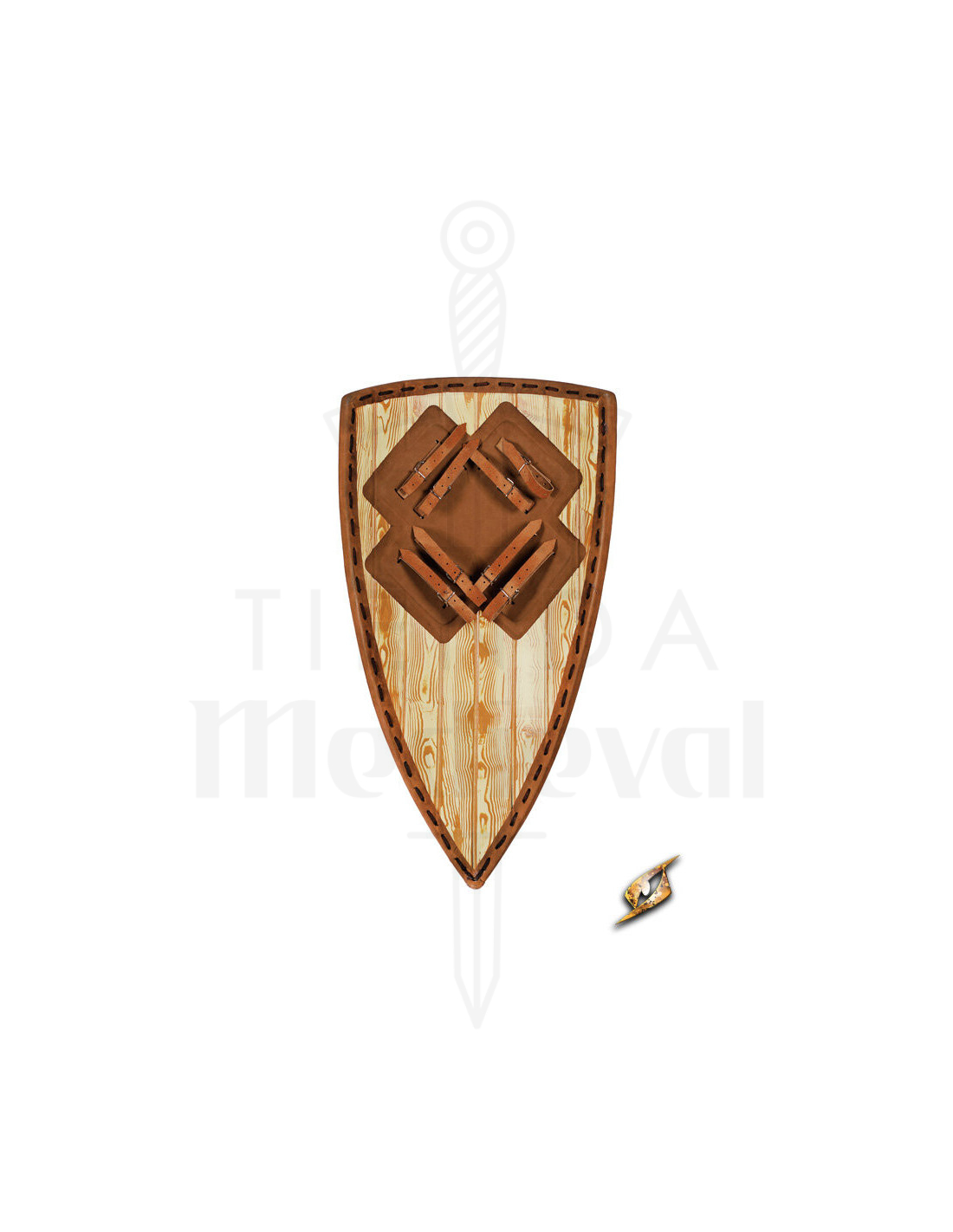 Der er rigelig plads til at vise insignier eller male dit heraldiske skjold, hvilket yderligere tilpasser dit udstyr. Ideelt til at være en del af en patrulje, en ridderskare eller en milits ved dine events og rollespil.