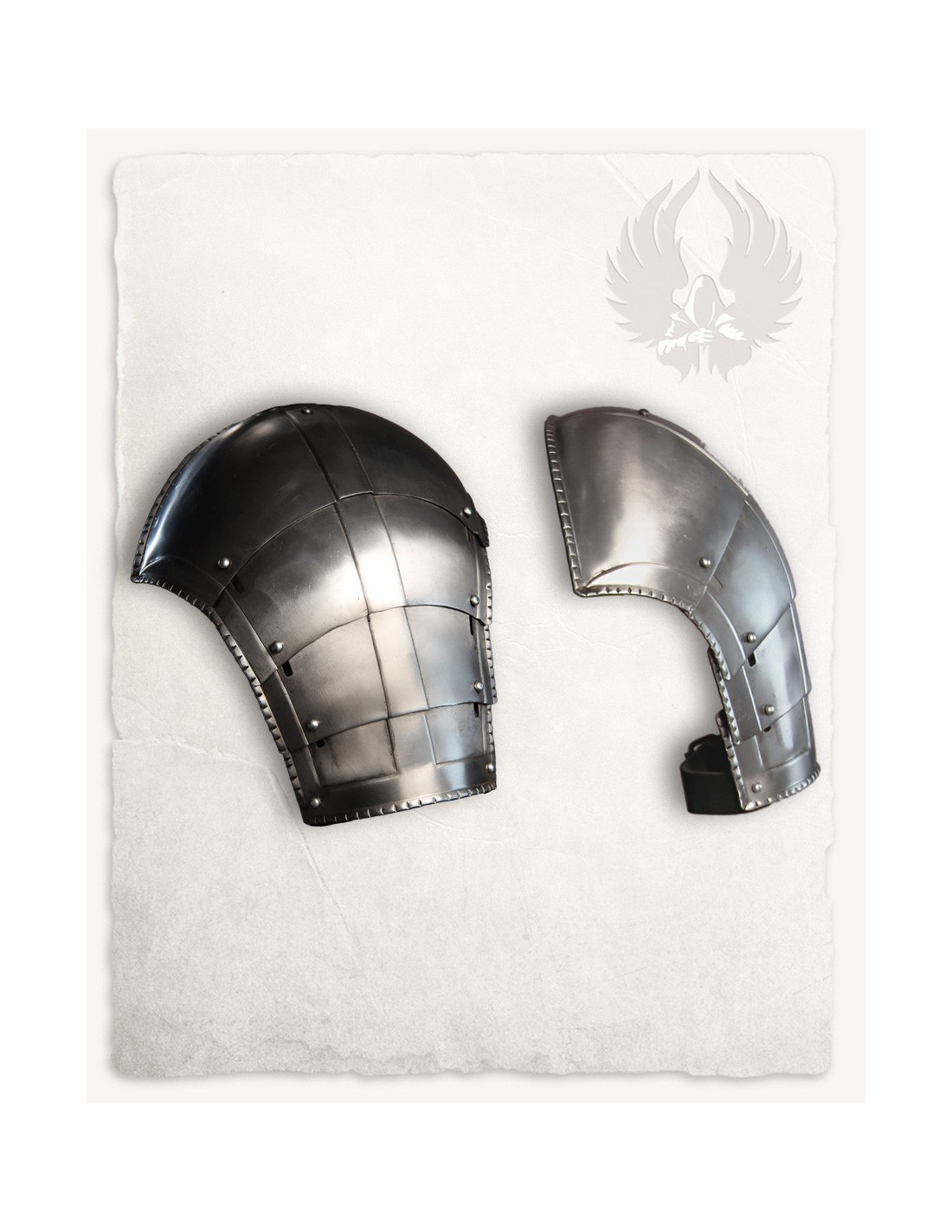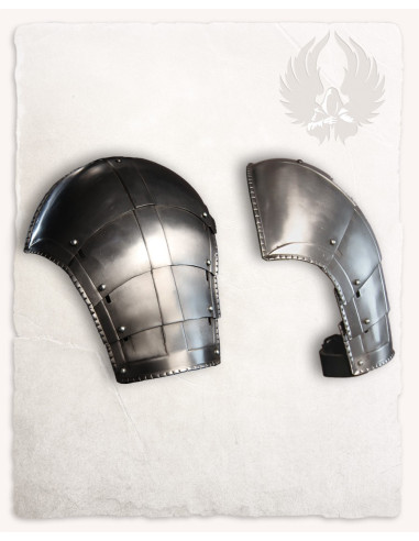 Kaspar-modellen middelalderlige polerede stålskulderpuder er en væsentlig del af 'Kaspar' panserserien. De er designet til at passe perfekt til resten af serien og er lavet af 4 fleksible plader forbundet, efter en historisk stil.
