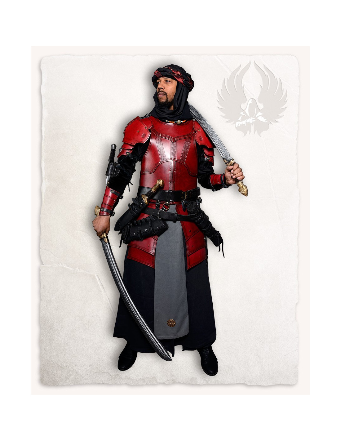 Markward Model Large Medieval Skulderpuder med poleret finish er en væsentlig del af 'Markward' rustning og skiller sig ud for deres robuste og udsmykkede design. Nedenfor giver jeg dig relevant information om disse skulderpuder: Rummelige segmenter: Disse skulderpuder har et langt overarmssegment, der forbinder det generøst designede skuldersegment....
