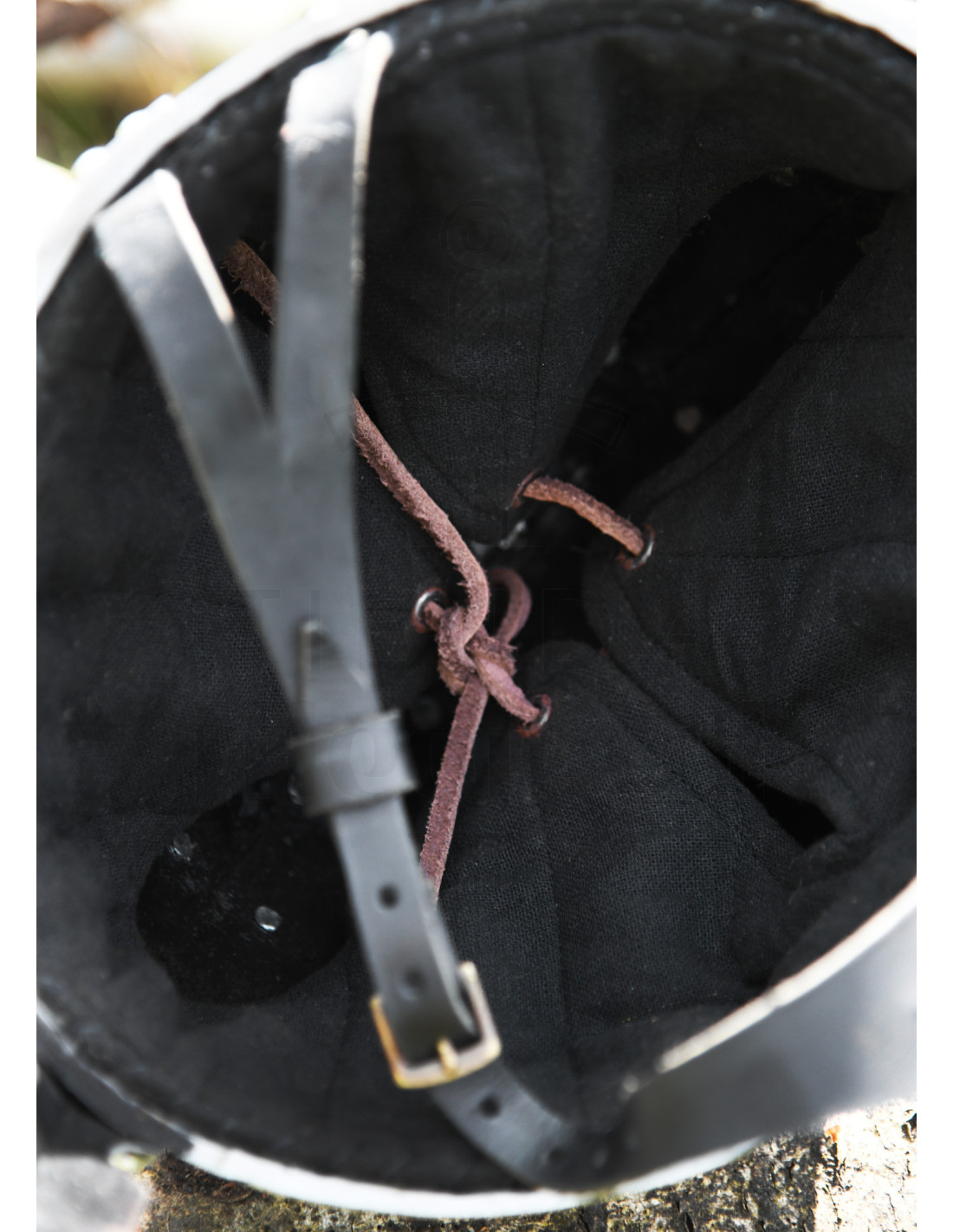 En af de fremragende egenskaber ved denne hjelm er dens 3 mm næsebeskyttelse, som tilføjer et ekstra sikkerhedsniveau for brugeren. Derudover inkluderer den en læderlukning med et messingspænde, designet til at fastgøre hjelmen sikkert til hagen, hvilket sikrer en perfekt og behagelig pasform under handling.