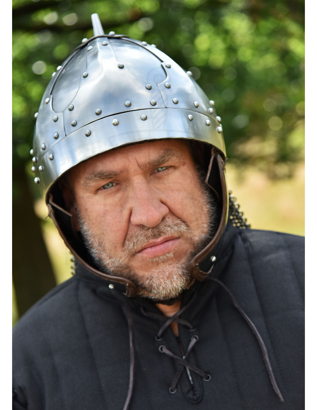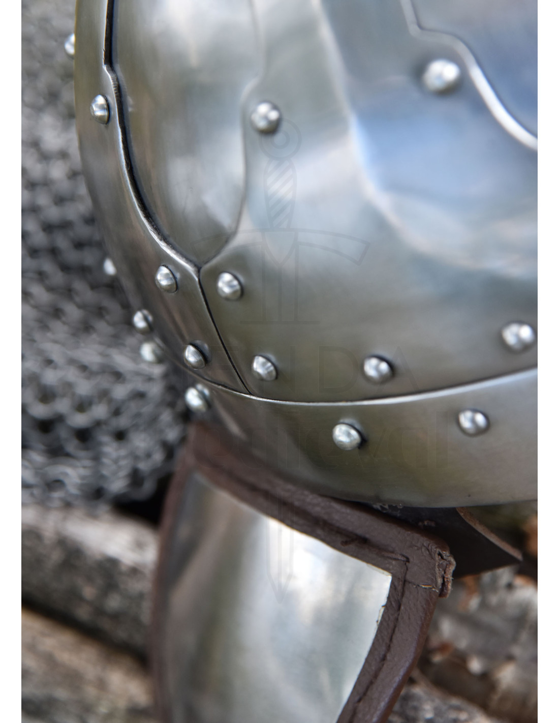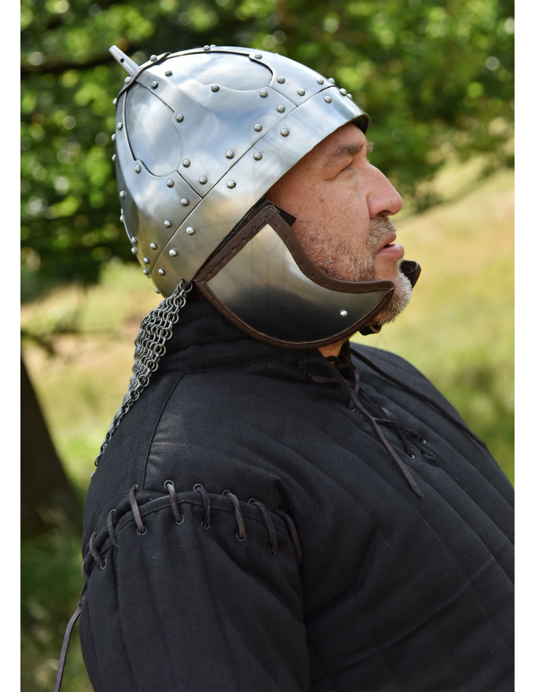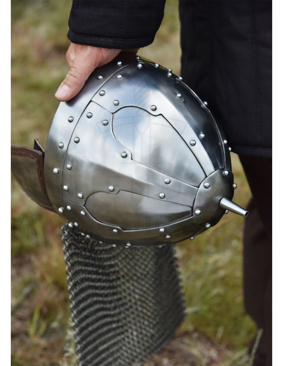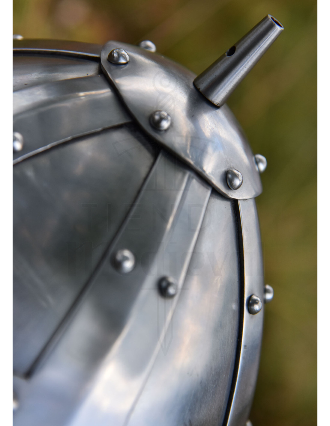En af de vigtigste fordele ved denne hjelm er dens højkvalitetsproduktion. Alle dele er svejset og nittet, hvilket sikrer dens styrke og holdbarhed. Derudover giver dens 2 mm tykkelse dig den nødvendige beskyttelse under dine kampe eller historiske repræsentationer.