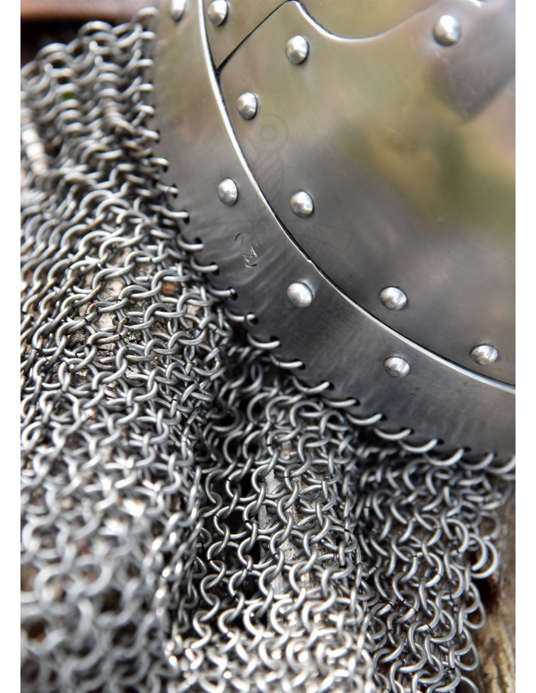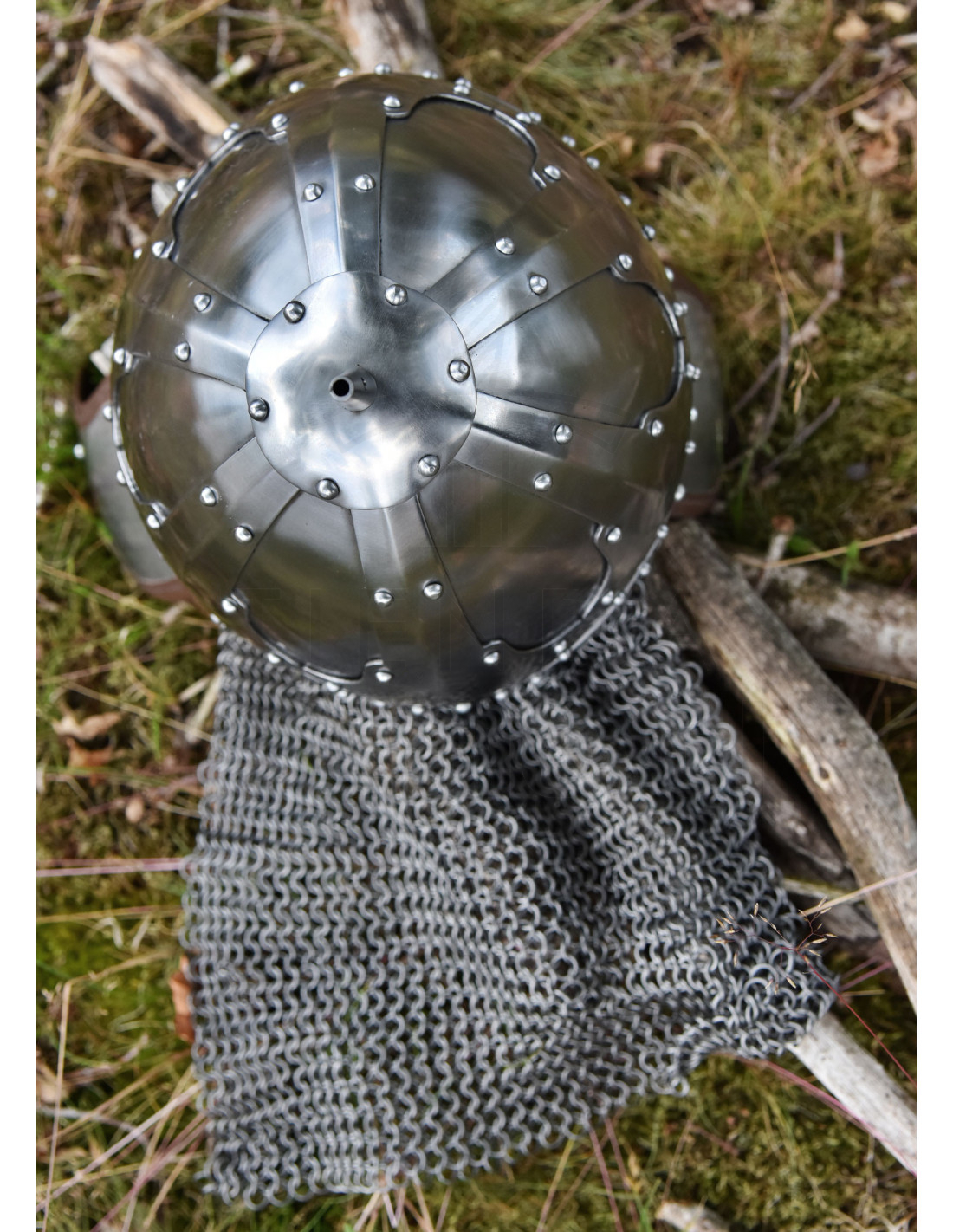 Gå ikke glip af muligheden for at føle dig som en ægte middelalderkriger med Spangenhjelmen med øreværn og Aventail. Få det nu, og lad dig blive transporteret til en tid fuld af eventyr og bedrifter!