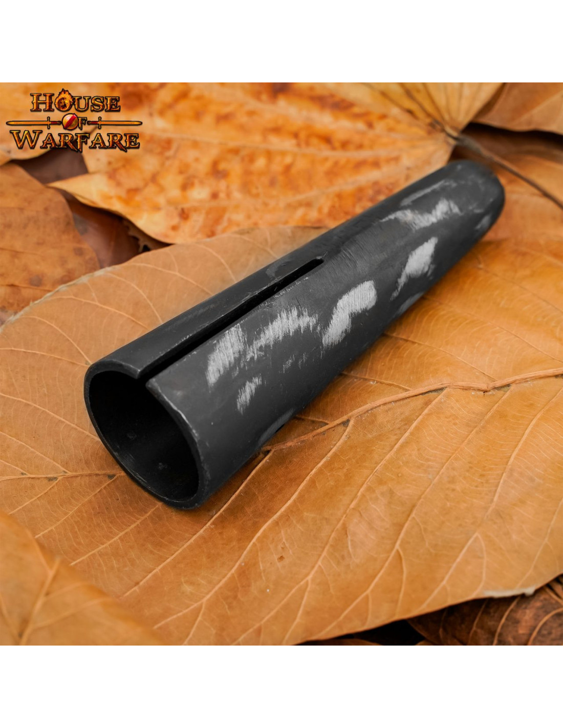 Kombinationen af dens længde og bredde, perfekt tilpasset tidens spyd, gør denne ferrule til et ideelt supplement til samlere og historieelskere. Dens håndsmedning garanterer et modstandsdygtigt og holdbart stykke, som forbliver i perfekt stand over tid. Derudover er dens størrelse perfekt til tilpasning til en bred vifte af middelalderlige spyd.