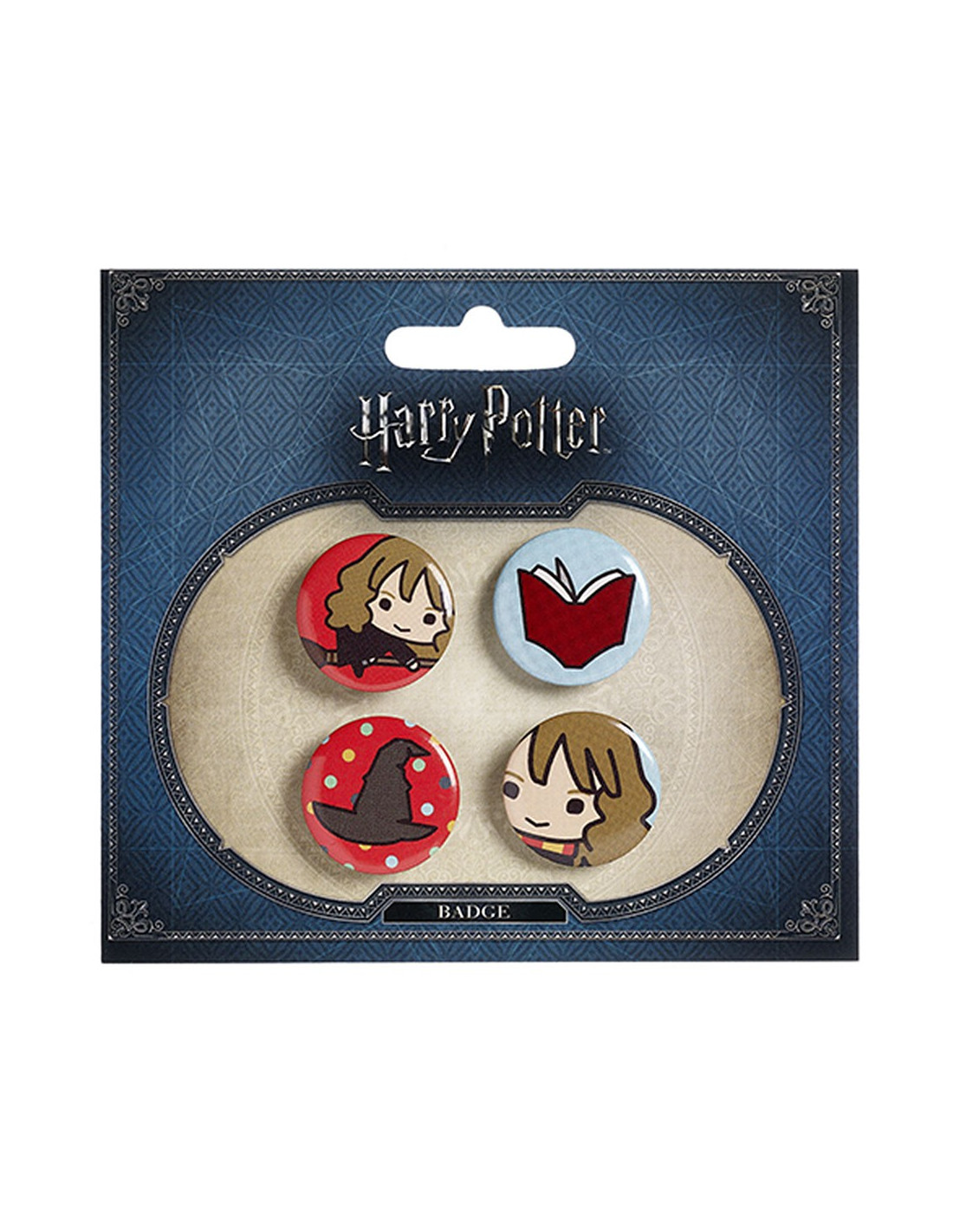 I dette sæt finder du et fantastisk Hermione-emblem, en sand repræsentation af hendes tapperhed og visdom. Du kan også bære et badge med en bog, et symbol på viden og eventyr. Og vi kunne ikke glemme Hermiones badge på kosteskaftet, som repræsenterer hendes passion for Quidditch og hendes dygtighed inden for magi. Derudover vil du have et sidste insignia, der fanger essensen af sorteringshatten, et essentielt magisk objekt i tryllekunstnernes verden.