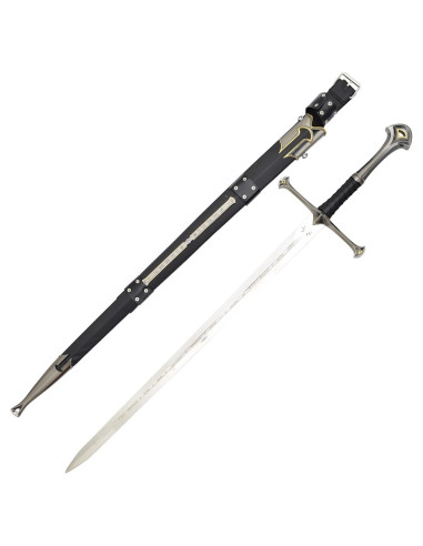Forestil dig at have et stykke, der fremkalder storheden i Midgård, et symbol på heroisme og eventyr, i dine hænder. Dette sværd, inspireret af Andúril, Aragorns legendariske sværd, er meget mere end et simpelt dekorativt objekt; det er et mesterværk, der fanger essensen af 'Ringenes Herre'.