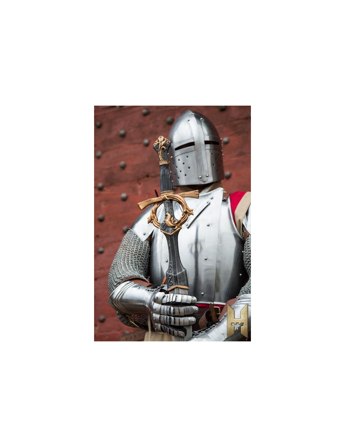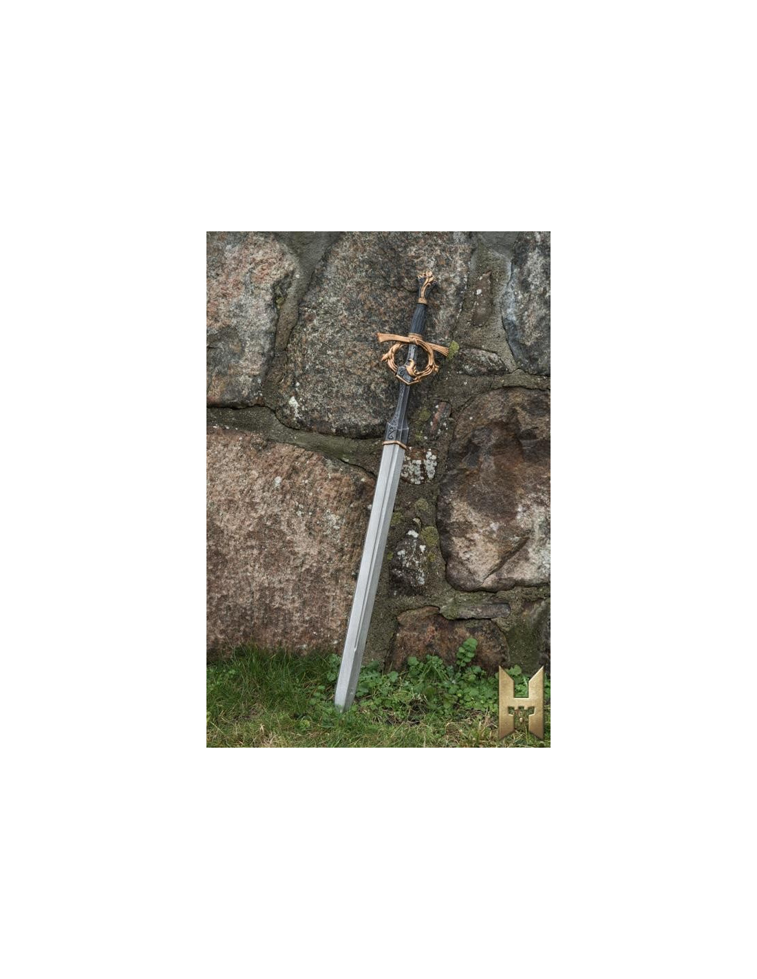 Oplev det ædle Stronghold-seriesværd, i sin gyldne version, fra det berømte mærke Epic Armory! Dette sværd, lavet af latex, er perfekt til elskere af rollespil og historiske rekreationer.