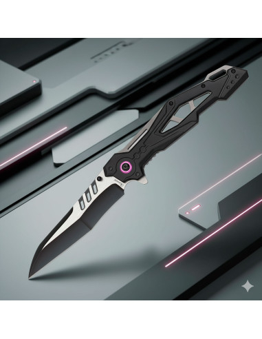 Dets 3cr13mov stålblad, kendt for sin holdbarhed og styrke, har en sort finish, der udover at beskytte mod korrosion, giver et moderne og diskret udseende. Den elegante form på bladet, med en skarp spids og en lige øverste linje, gør det nemt at lave præcise og kontrollerede snit, ideelt til både taktiske aktiviteter og daglige opgaver.
