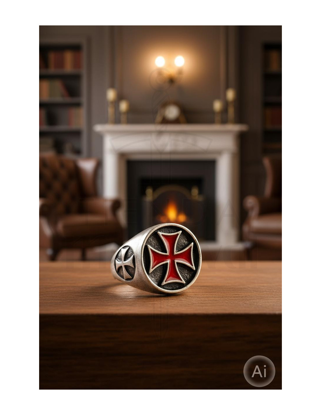 Den emaljerede Templar Cross-dekoration på denne ring tilføjer et strejf af historie og symbolik. Tempelridderne var kendt for deres tapperhed og hengivenhed, og denne ring giver dig mulighed for at bære deres ånd med dig.