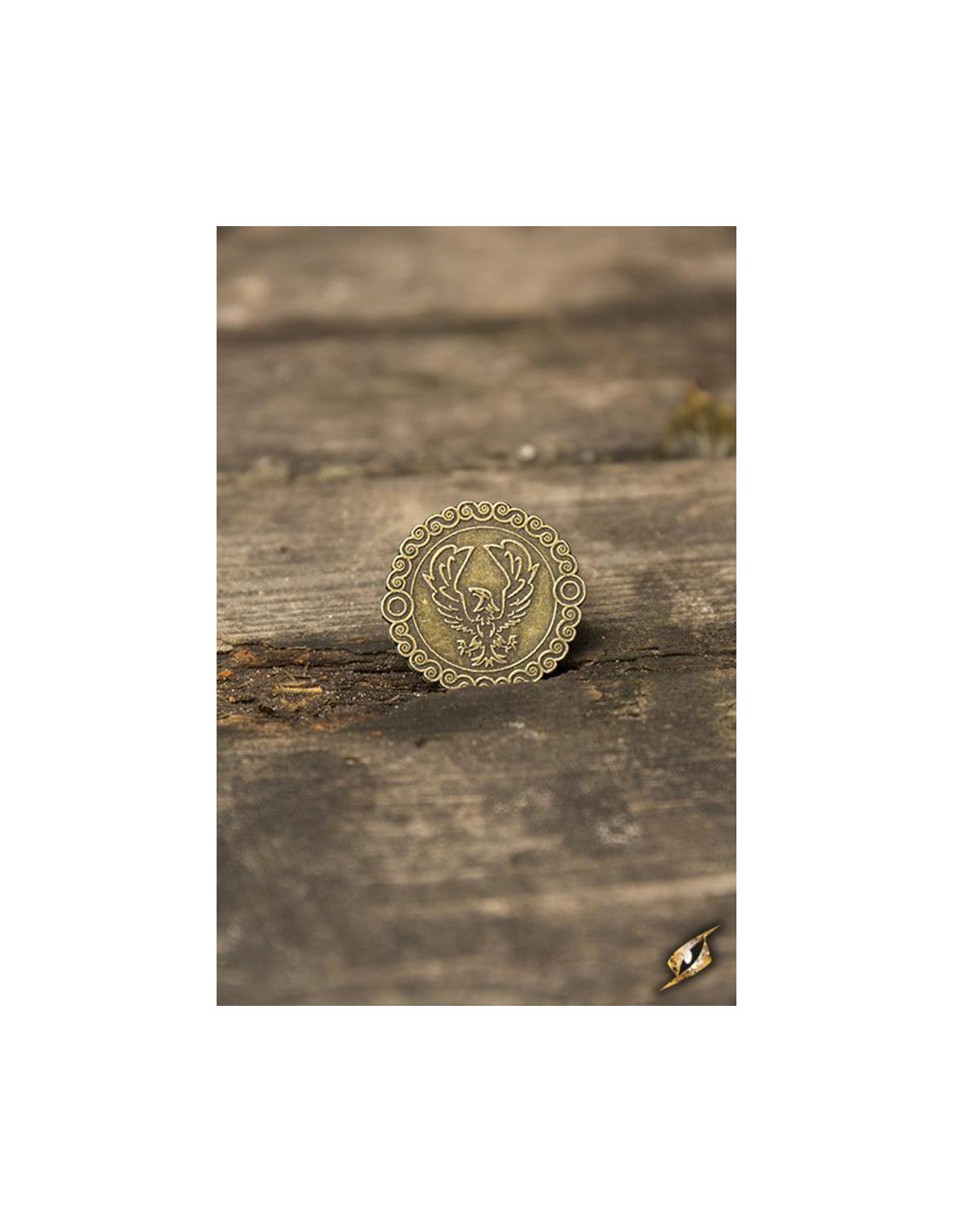 Hver mønt har en indgraveret ørn på den ene side og Epic Armory-logoet på den anden, hvilket tilføjer et strejf af ægthed og kvalitet. Derudover giver deres kobberfinish dem et elegant og sofistikeret udseende, hvilket får dem til at skille sig ud blandt de andre mønter.