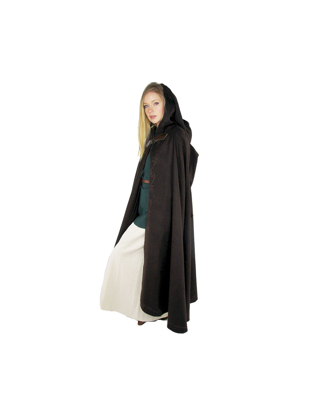 Oplev elegancen og stilen i den middelalderlige kappe med broderi og Gesa-broche i brun. Denne kappe, lavet af højkvalitets uld, vil give dig en følelse af varme og komfort ved enhver lejlighed.