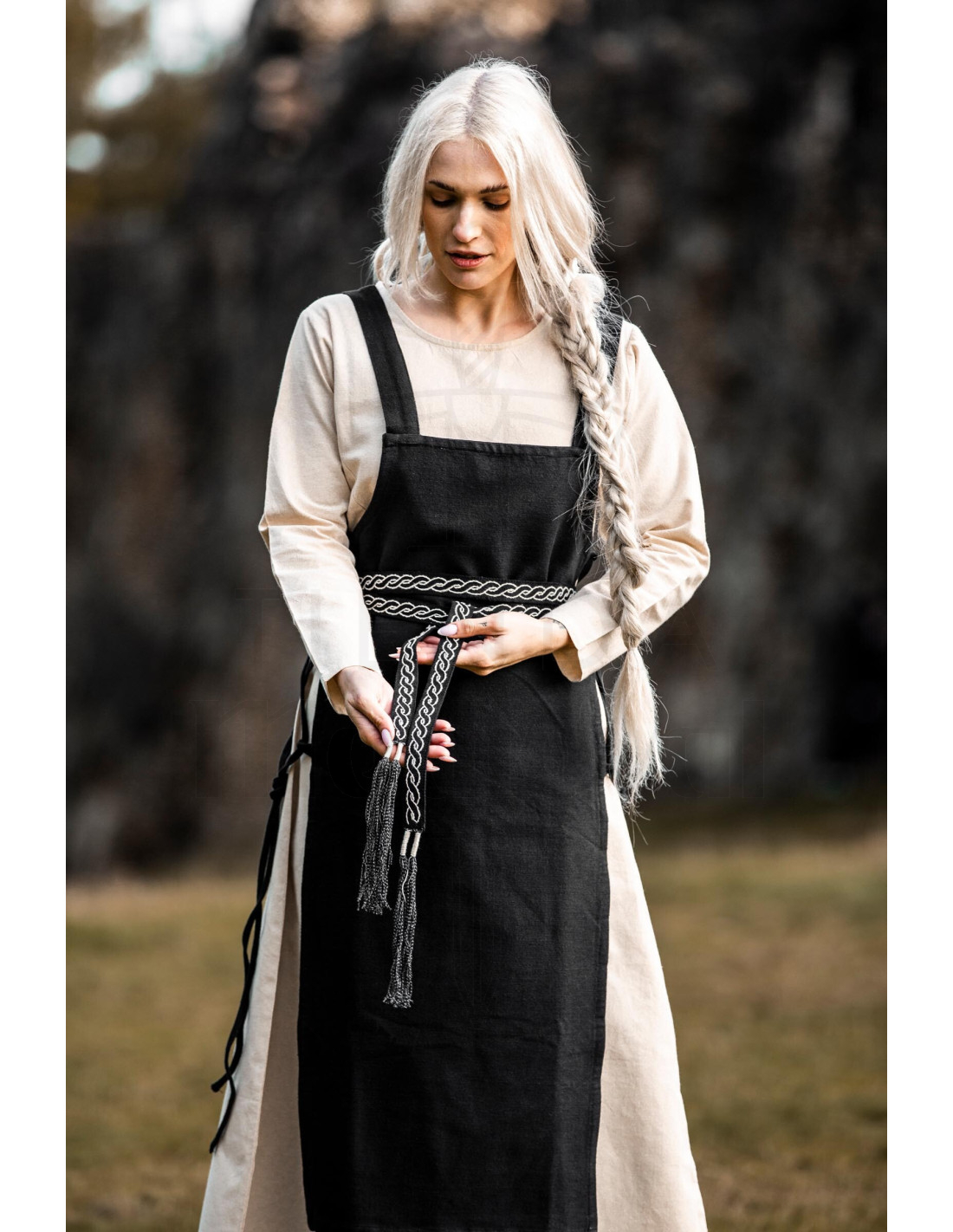Den vikinginspirerede stil tilføjer et præg af autencitet, og vækker minder om accessories, der tidligere fortalte historier om håndværk og status, her genfortolket til hverdagen. Den subtile forbindelse til fortiden gør Unisex bælte model Veigga sort med broderier til et stykke med personlighed, ideelt til både urbane looks og temafester.