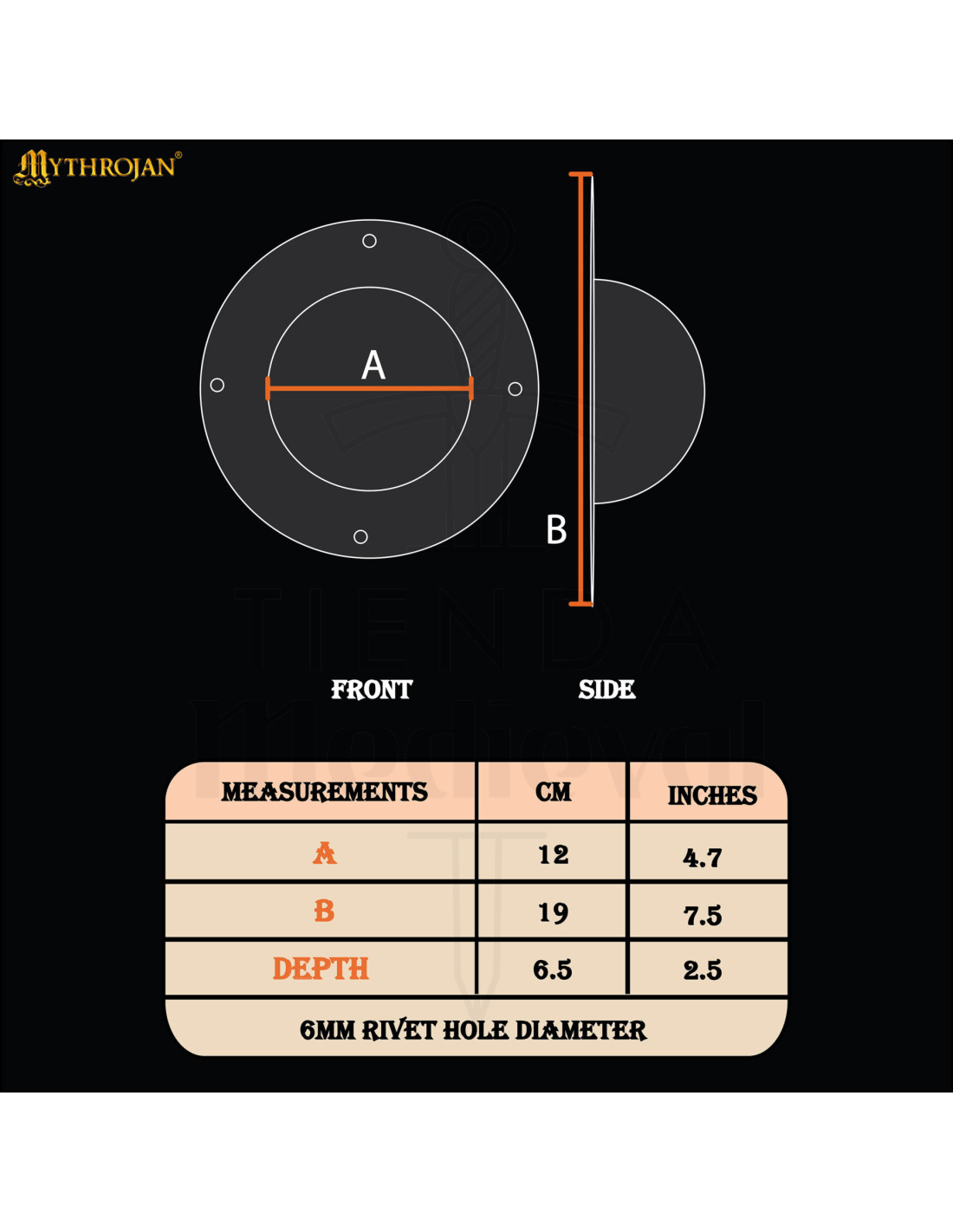 Dette skjoldknap er ikke kun ideelt til aktiviteter som LARP, teater eller samling, men tilføjer også et ekstra lag af beskyttelse og æstetik i enhver scene. For fuld anvendelse kan du supplere med et træ- eller læderhåndtag for en endnu mere autentisk og komfortabel oplevelse.