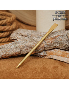 - Autentisk materiale og design: Denne stylus er lavet af messing og genskaber det værktøj, der blev brugt i romertiden til at skrive på voksede tabletter. Dens traditionelle design afspejler historisk autenticitet.