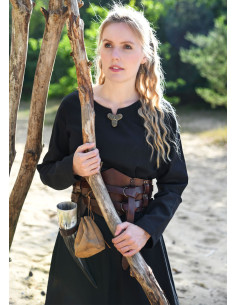 Den slidsede halsudskæring, der er karakteristisk for den tidlige middelalderperiode, giver dig mulighed for at bære den enten åben, med et strejf af mystik, eller lukket med en fibula for et mere klassisk touch. Valget er dit, elegance garanteret!