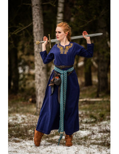 Lang vikingekjole i Aslaug-model, blå farve