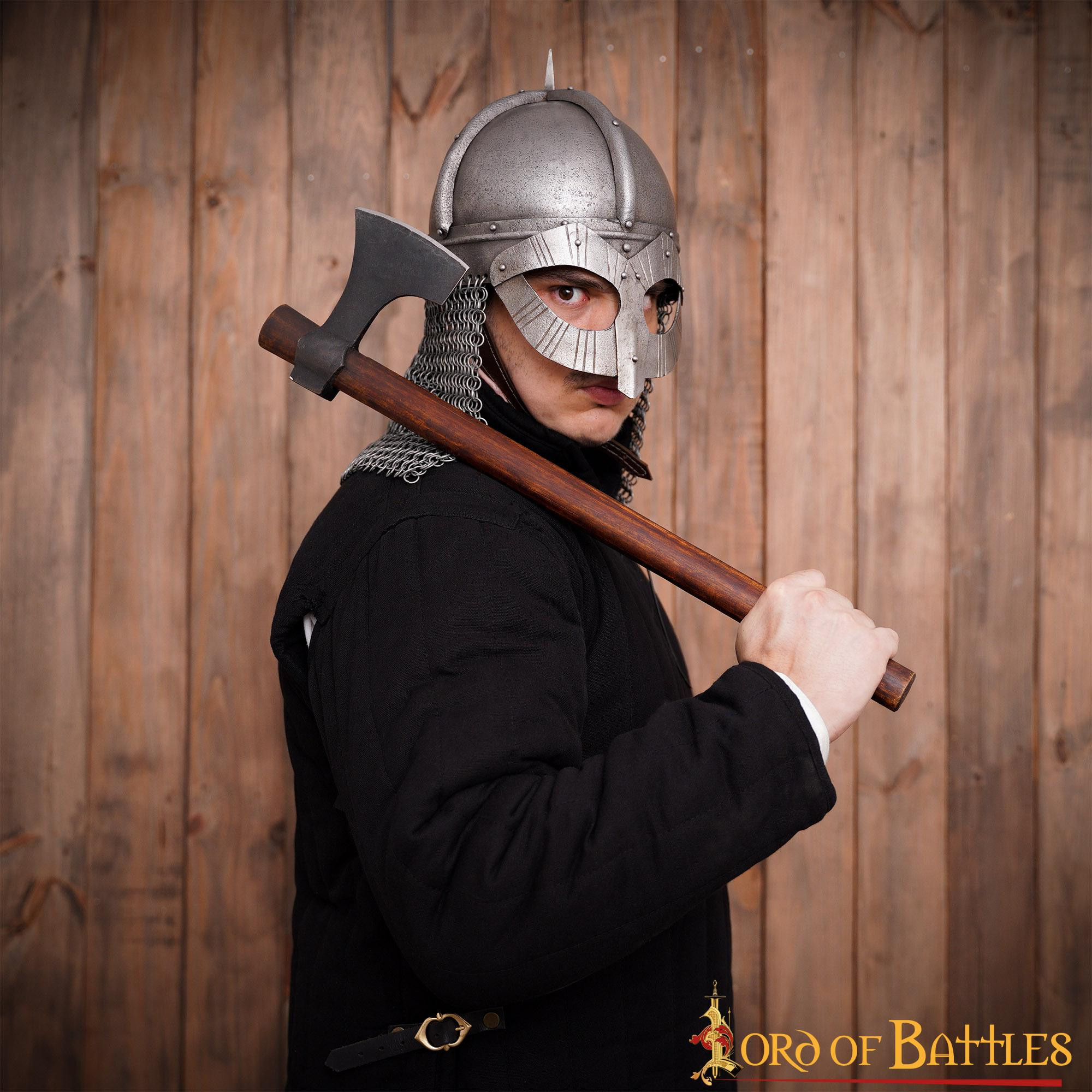 Lad dig ikke nøjes med efterligninger. Hvis du søger trofast at genskabe oplevelsen af en autentisk skandinavisk viking, er denne fuldt funktionelle hjelm det perfekte valg. Derudover garanterer dets beskyttende olielag enestående holdbarhed mod korrosion.