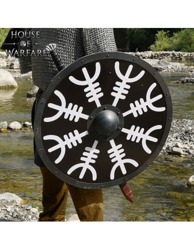 Med sin imponerende metal-umbo boltet til skjoldet giver Windlass Cross Viking Shield dig den beskyttelse, du har brug for på slagmarken. Dens runde form og dens generøse mål på 76 x 76 cm sikrer et solidt og pålideligt forsvar.