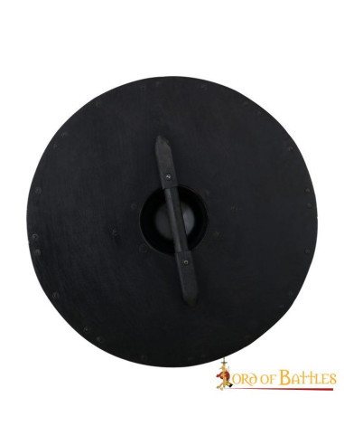 Det er konstrueret med en solid træbase og forstærket med højkvalitets stålkonturer, hvilket giver den beskyttelse, du behøver til enhver udfordring. Dens størrelse på 61 cm balancerer bevægelse og forsvar, så du kan manøvrere frit uden at gå på kompromis med robusthed. Med en vægt på kun 3,6 kg og en tykkelse på 1,4 mm kan du håndtere det med fokus og lethed. Grebet og fastgørelsen på armen sikrer fuld kontrol, hvilket gør hver brug til en forlængelse af din vilje til at kæmpe og sejre. Hvis du ønsker at repræsentere styrken hos vikingekrigere, omdanner dette skold dit engagement til en erklæring om magt og udholdenhed.