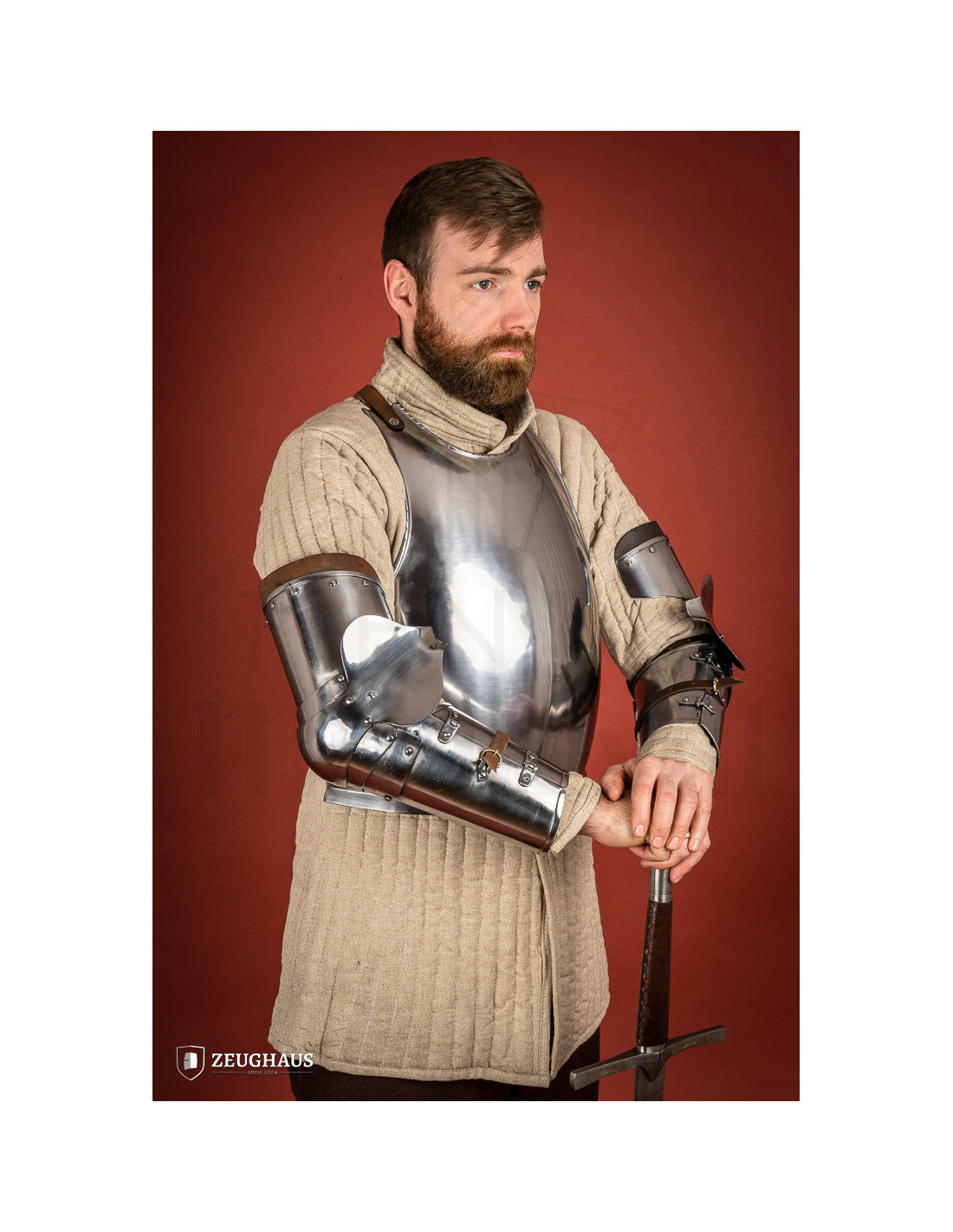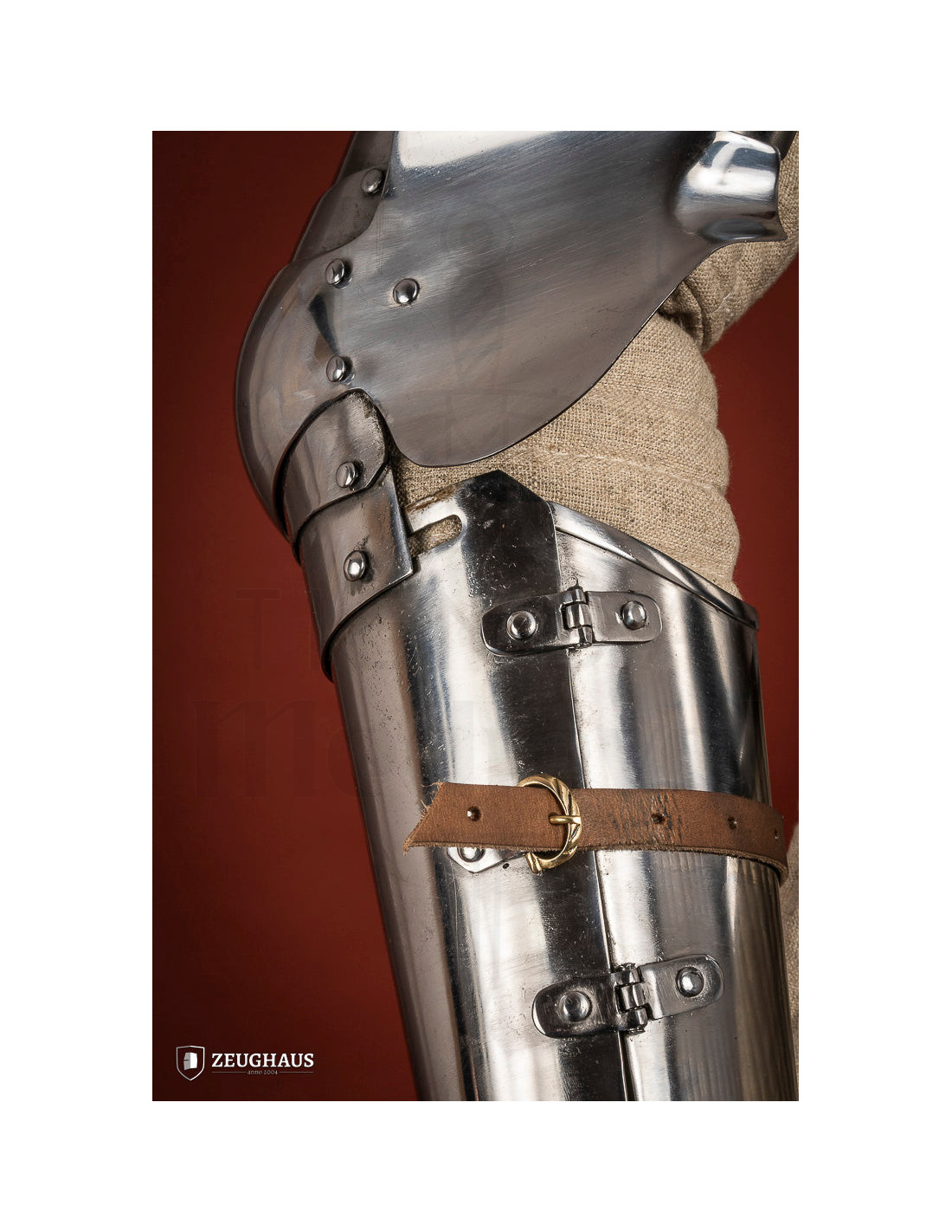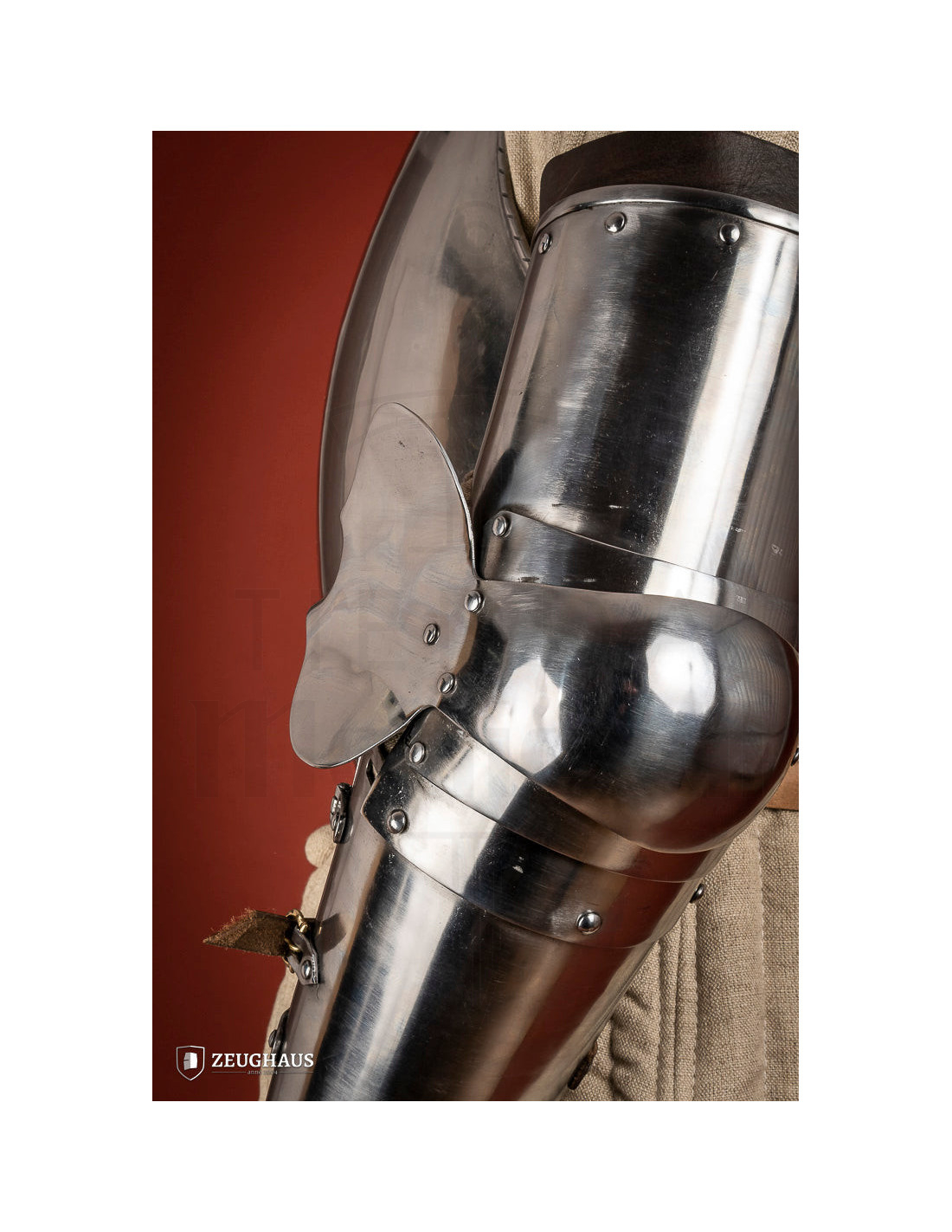 Bereiten Sie sich darauf vor, die Pracht des Spätmittelalters nachzuahmen, mit diesen polierten mittelalterlichen Waffen, die von den ikonischen Designs des späten 14. bis mittleren 15. Jahrhunderts inspiriert sind. Diese Rüstungen bieten Ihnen außergewöhnlichen Schutz, während Sie in die Geschichte und den Stil dieser Zeit eintauchen.