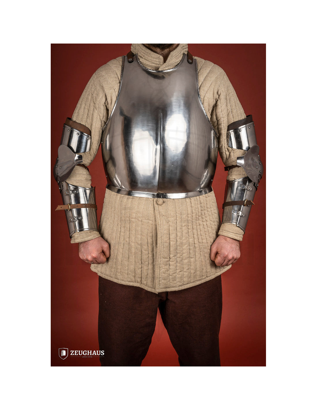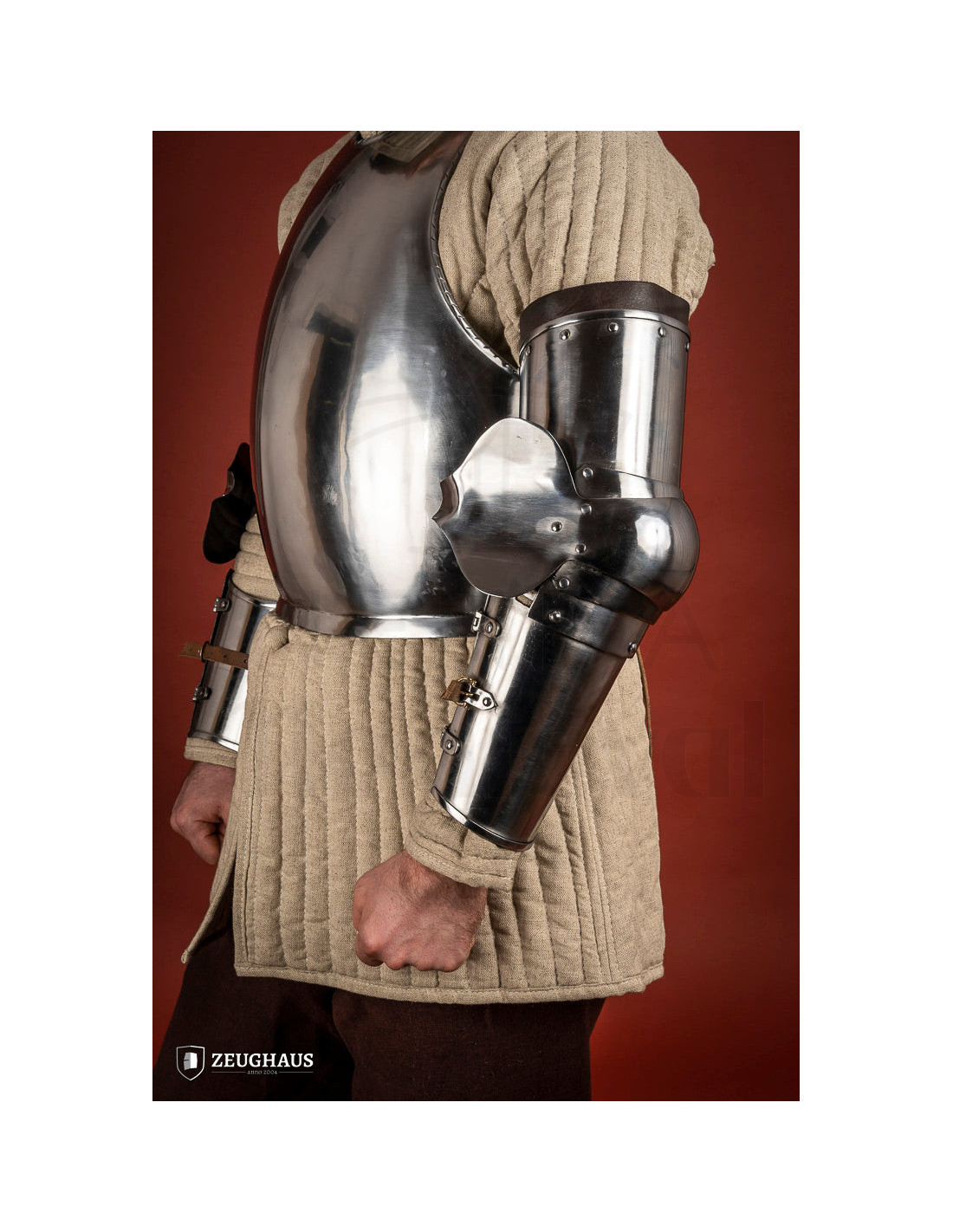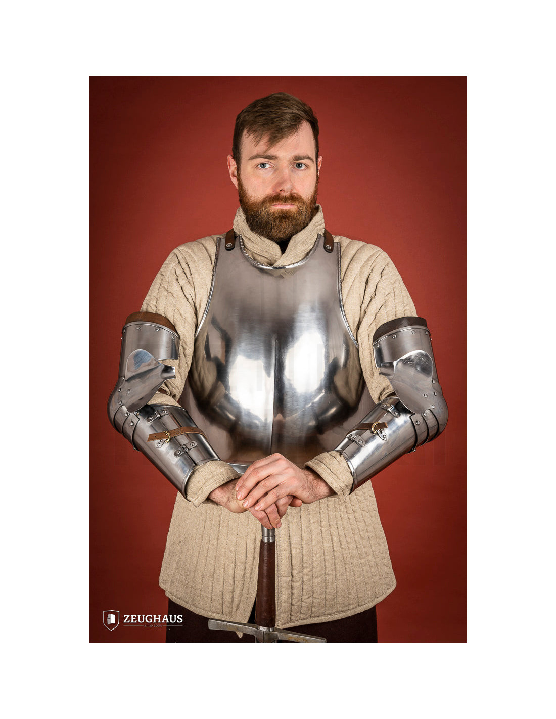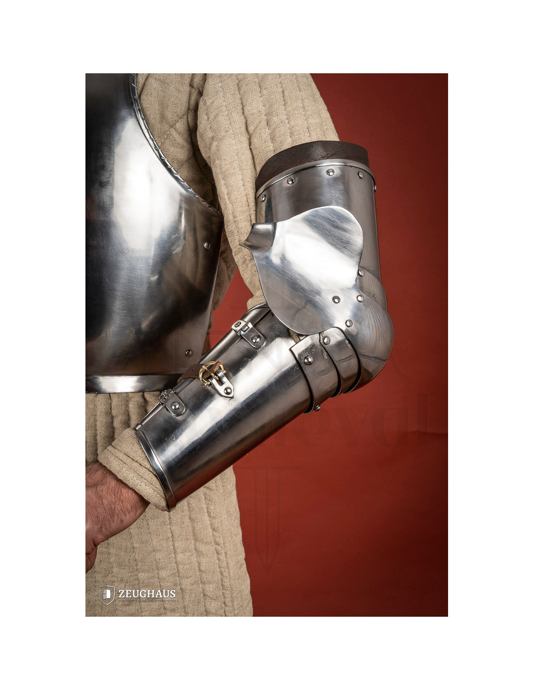 Bereiten Sie sich darauf vor, die Pracht des Spätmittelalters nachzuahmen, mit diesen polierten mittelalterlichen Waffen, die von den ikonischen Designs des späten 14. bis mittleren 15. Jahrhunderts inspiriert sind. Diese Rüstungen bieten Ihnen außergewöhnlichen Schutz, während Sie in die Geschichte und den Stil dieser Zeit eintauchen.