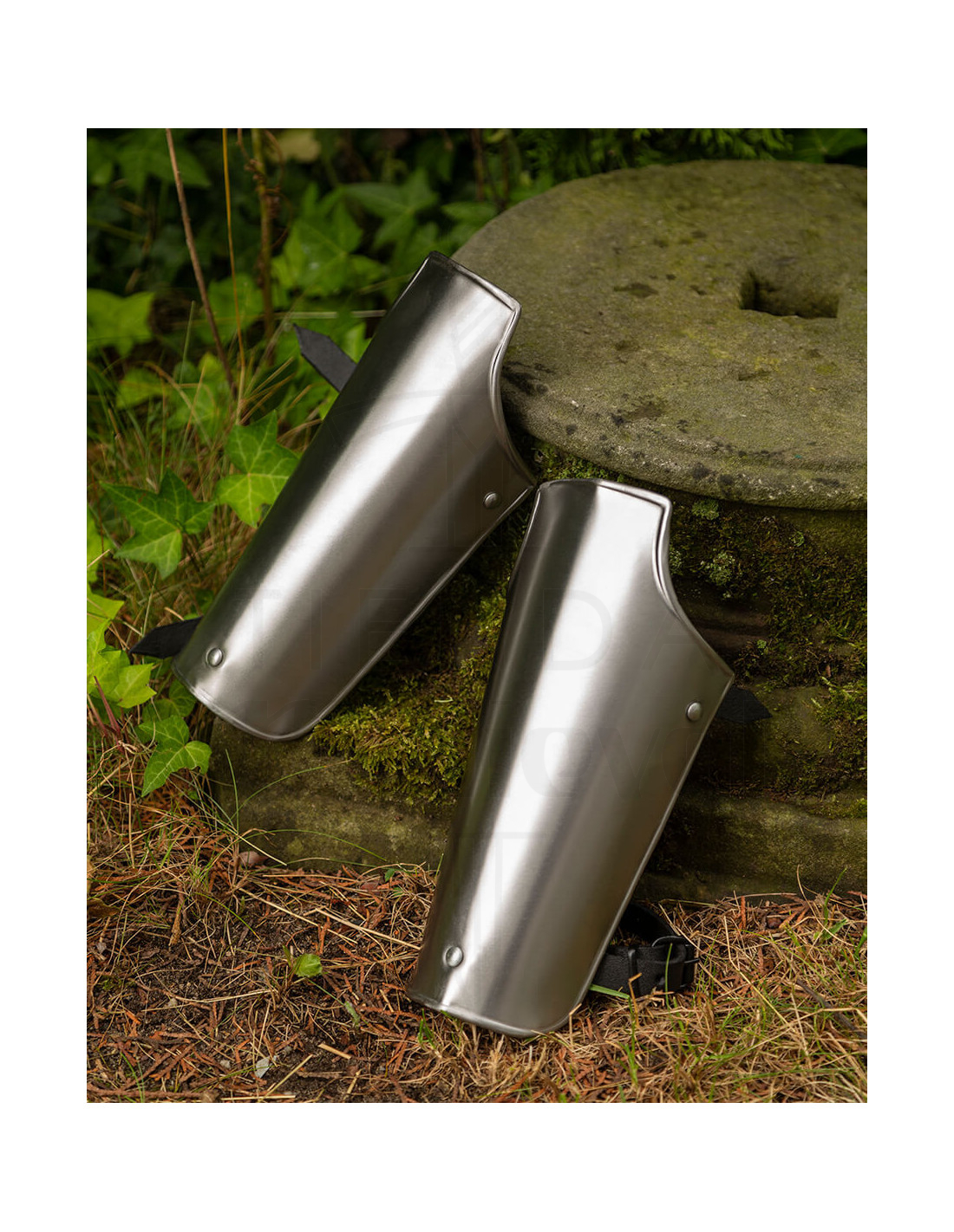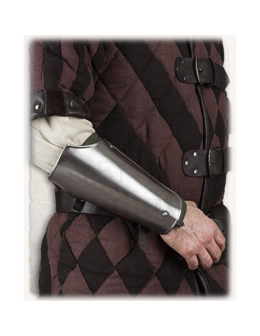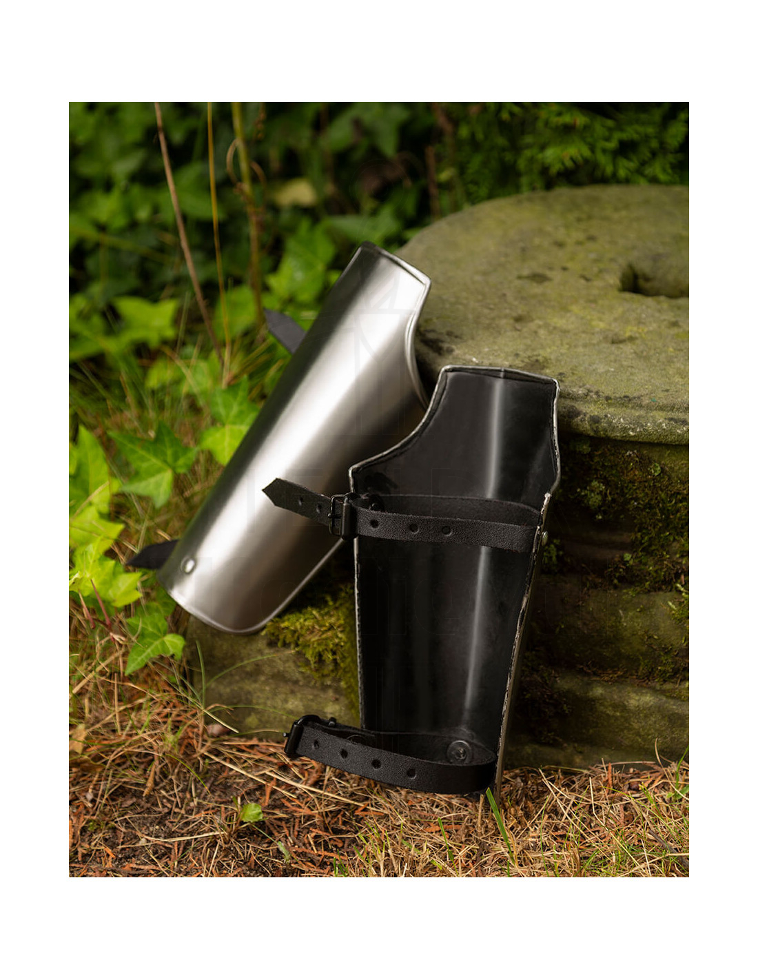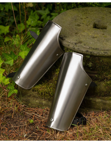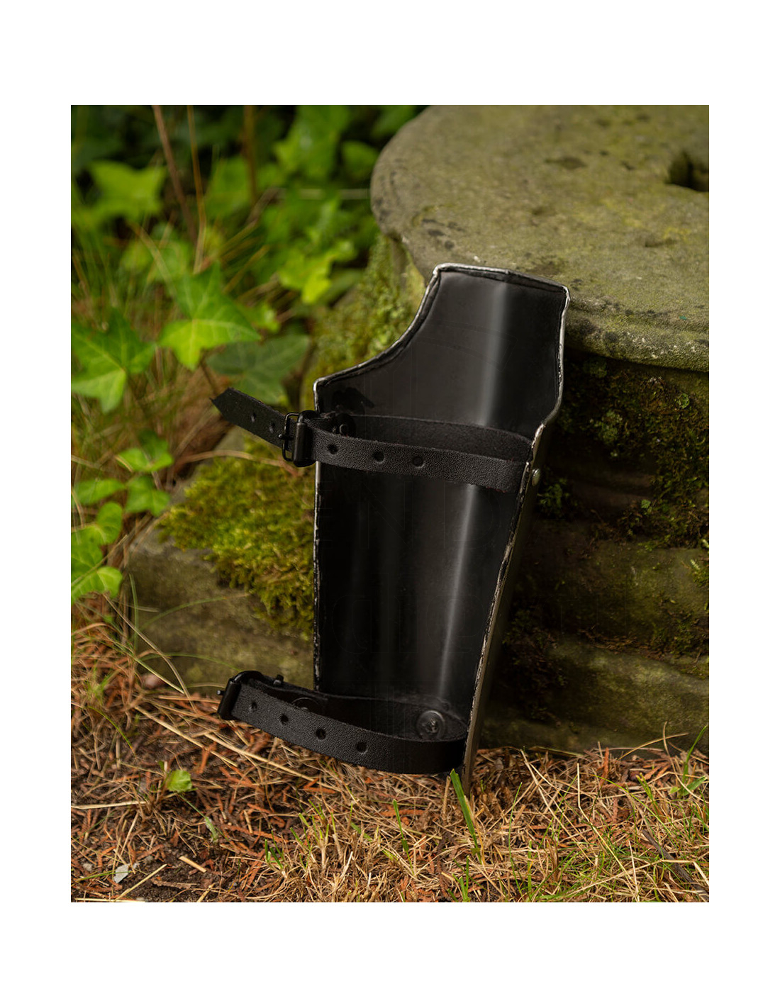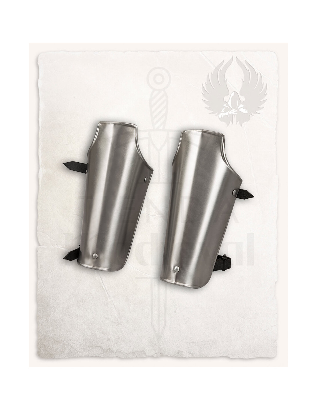 Gefertigt aus 1,2 mm dickem Stahl in den Farben Blank oder Gebräunt, bieten sie eine perfekte Kombination aus Widerstandsfähigkeit und Stil. Mit einer Länge von 25 cm passen sie bequem auf den oberen Unterarm (20 cm oben und 14 cm unten) und sind dank ihrer schwarzen Riemen mit Schnallen leicht anpassbar, was eine sichere und individuelle Passform ermöglicht.