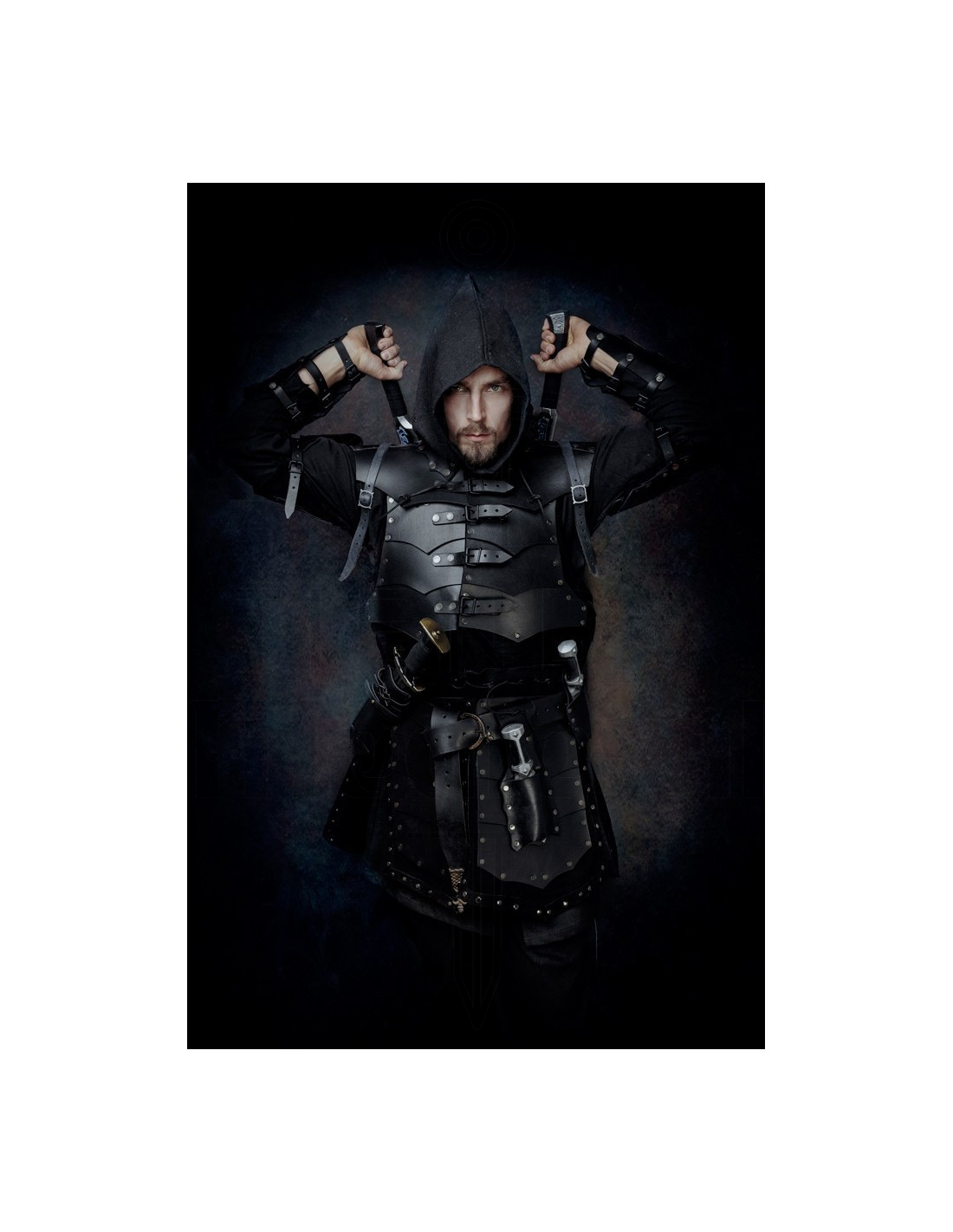 Hergestellt aus hochwertigem geteiltem Leder, bieten sie eine weiche und strapazierfähige Textur, die Langlebigkeit und Komfort bei jedem Gebrauch vereint. Ihr gebogendes Design folgt der Silhouette des Arms, erleichtert die Beweglichkeit und vermeidet Unannehmlichkeiten bei langen Tagen oder recreativen Kämpfen. Zudem werden sie im Paar verkauft, sodass Sie ein harmonisches und vollständiges Set erstellen können. Das klassische und robuste Design dieser Armbänder macht sie ideal für Themenveranstaltungen, Cosplay oder um Ihren mittelalterlichen Look zu unterstreichen und ihm einen Hauch von Autorität und Charakter zu verleihen.