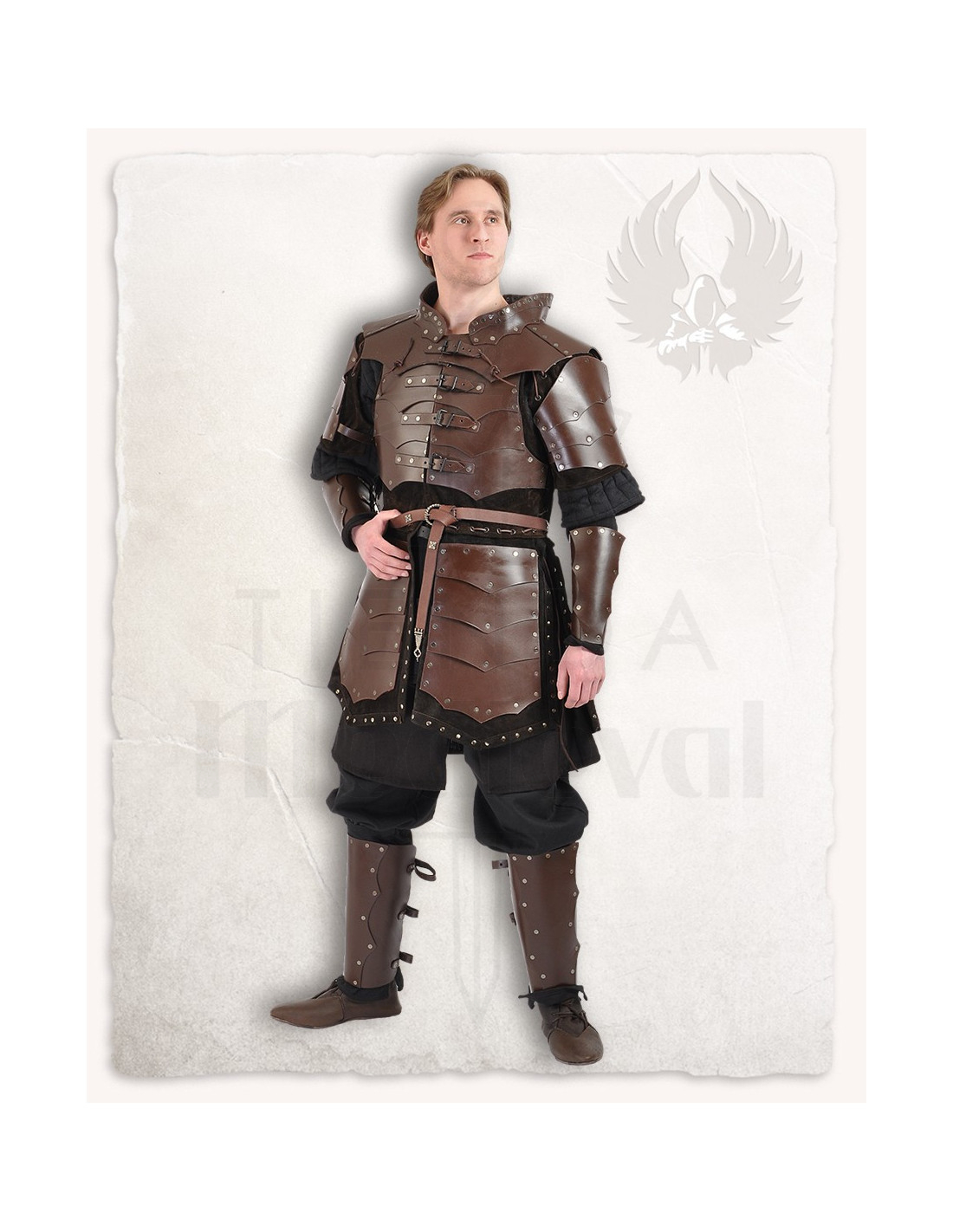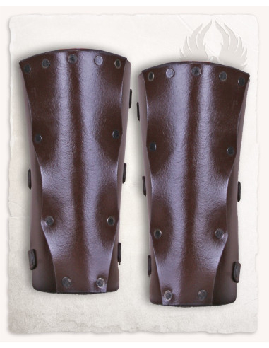 Suchen Sie nach einem authentischen Akzent für Ihren mittelalterlichen Stil oder Cosplay? Diese Lederarmbänder im Rasmus-Modell sind die perfekte Wahl, um Ihren Look mit einem robusten und klassischen Touch zu ergänzen. Das elegante braune Design passt sich dank des Verschlusses mit drei Schnallen fast jeder Armlänge an und garantiert Komfort sowie festen Halt.