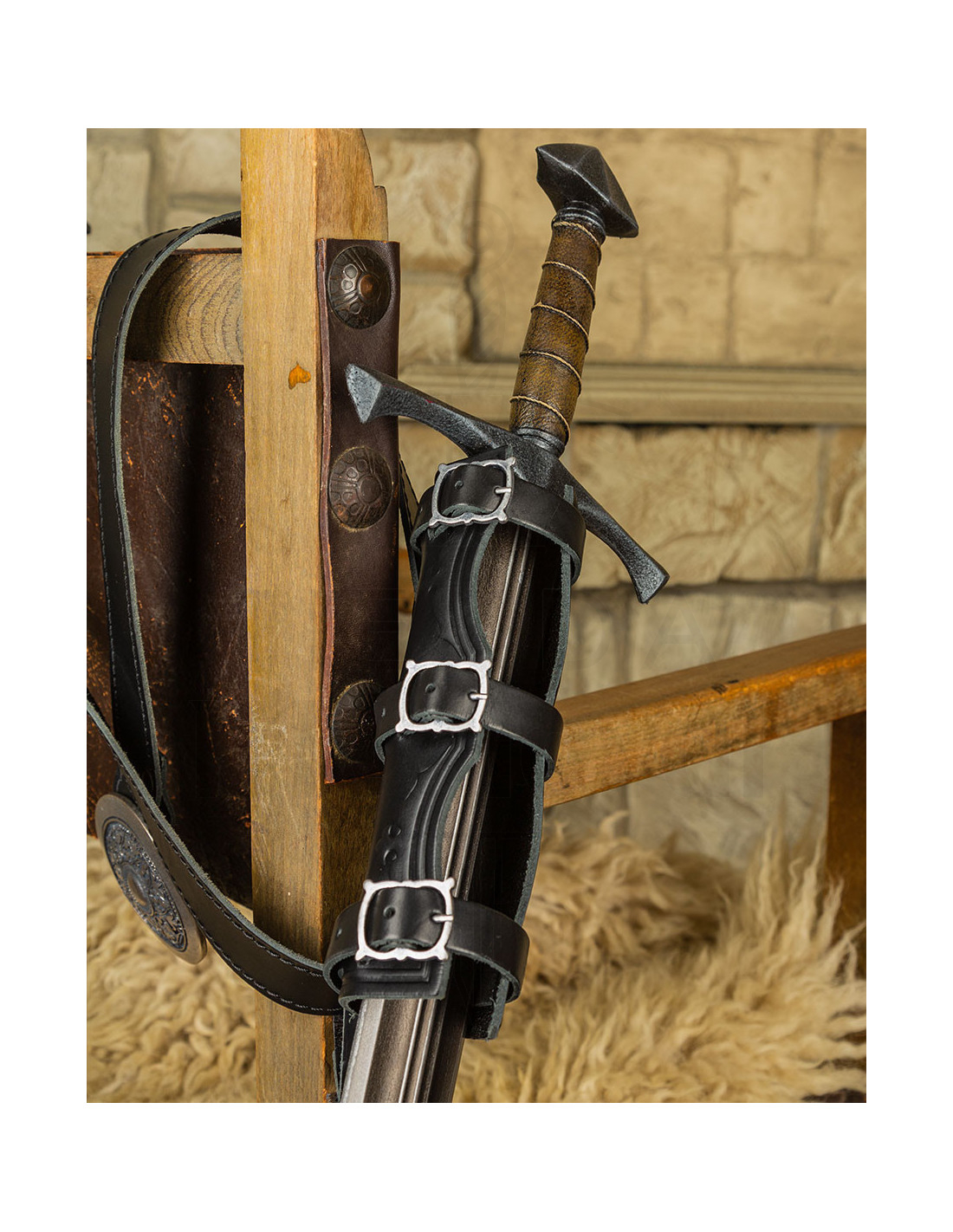 Suchen Sie die perfekte Möglichkeit, Ihr Schwert stilvoll und bequem zu tragen? Dieser elegante mittelalterliche Lederschutz in Schwarz ist die ideale Wahl für alle, die Qualität und makelloses Design schätzen. Hergestellt von der renommierten italienischen Firma 'Fucina del drago', in Europa bekannt als 'Drachenschmiede', mit einem Ruf für außergewöhnliche Ledertprodukte, vereint jedes Stück Langlebigkeit und meisterliche Handwerkskunst.