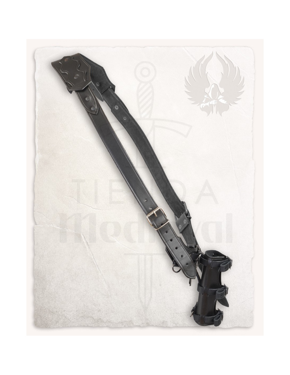 Sein verstellbares Design passt sich verschiedenen Größen an und sorgt für Komfort und Sicherheit. Ausgestattet mit Schnallen auf beiden Seiten ermöglicht er das Tragen auf der linken oder rechten Seite, je nach Vorliebe. Zusätzlich verfügt er über einen Schultergurt, mit dem ein einzelner Rücken- oder Spaulder befestigt werden kann, was eine weitere Möglichkeit bietet, Ihre Ausrüstung zu personalisieren, wie z.B. den 'Crisso'.