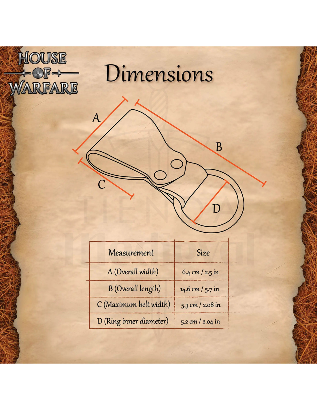 Vergessen Sie komplizierte Anpassungen, das Design ermöglicht es, Äxte, Hammer oder andere Stangenwerkzeuge sicher und geräuschlos beim Gehen zu tragen. Der feste Ring hält die Waffe ohne unangenehmes Schwingen, während die verstellbare Schlaufe auf gängige breite Gürtel passt und sich harmonisch mit Wikinger-, mittelalterlichen oder LARP-Outfits integriert.