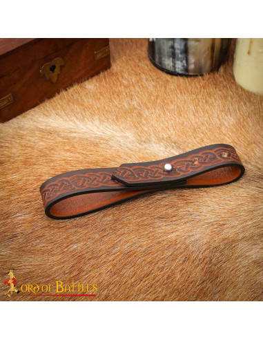 Die handgefertigte Gravur mit keltischen Knoten ist nicht nur dekorativ, sondern eine Stil-Deklaration, die mit Stärke, Kontinuität und keltischer Tradition verbunden ist. Diese kulturelle Verbindung macht das Stück zu mehr als nur einem einfachen Gürtel; es ist ein authentischer Zwinkern an mittelalterliche Zeiten, ideal für historische Veranstaltungen und für diejenigen, die handwerkliche Arbeit mit Geschichte schätzen.