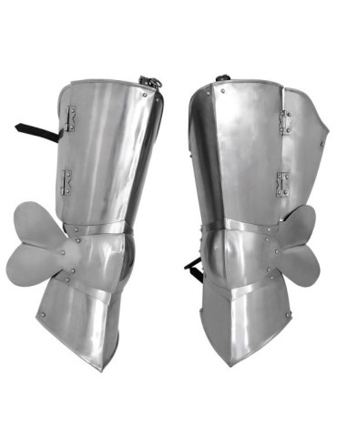 Rüsten Sie sich mit authentischen mittelalterlichen Beinen aus Leder und Stahl aus! Diese aus einer Kombination aus schwarzem Horn und Stahl gefertigten Beinschützer bieten eine perfekte Kombination aus Stil und Funktionalität, die Sie direkt ins Mittelalter zurückversetzen wird. Diese Stücke eignen sich ideal für historische Nachstellungen, Cosplay oder einfach für Liebhaber traditioneller Rüstungen und sind die perfekte Ergänzung für jeden Geschichtsliebhaber.