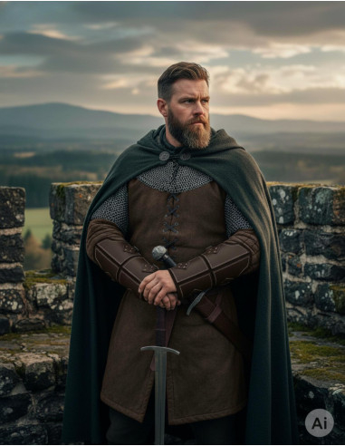 Wenn dir die ästhetische Konsistenz wichtig ist, hast du die Option, das Set mit dem passenden Wappenrock und den Armreifen zu vervollständigen und so ein koordiniertes und kraftvolles Bild zu erzielen, das Stil und Detailverliebtheit vermittelt. Das Tragen des Sets verleiht Präsenz, Kohärenz und den professionellen Abschluss, der einen engagierten Reenactor auszeichnet.