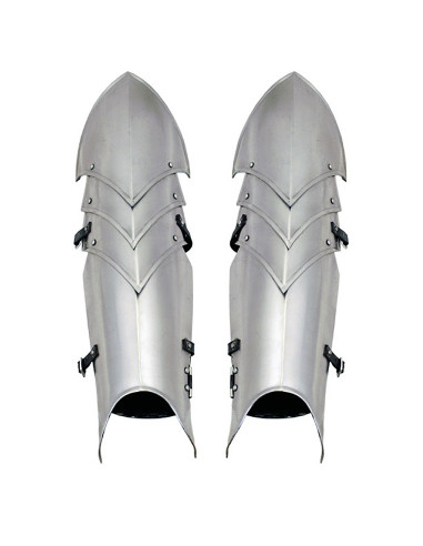 Sind Sie ein echter Krieger und auf der Suche nach dem perfekten Schutz für Ihre Beine? Suchen Sie nicht weiter, denn die Steel Strap Greaves von Battle Merchant sind genau das, was Sie brauchen. Diese Beinschienen bestehen aus hochwertigen 1,6 mm dicken Stahlplatten und sind dadurch äußerst robust und langlebig.
