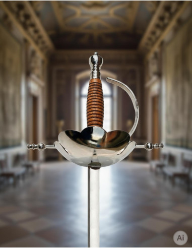 Dieses Florett wurde ausschließlich als Dekorations-, Ausstellungs- und Sammlerobjekt entworfen und hergestellt. Seine Leichtigkeit und sein Design machen es perfekt, um in jedem Raum zu glänzen und einen eleganten, historischen Akzent zu setzen. Es ist nicht für den Einsatz beim Fechten, Training oder rüden Umgang bestimmt.