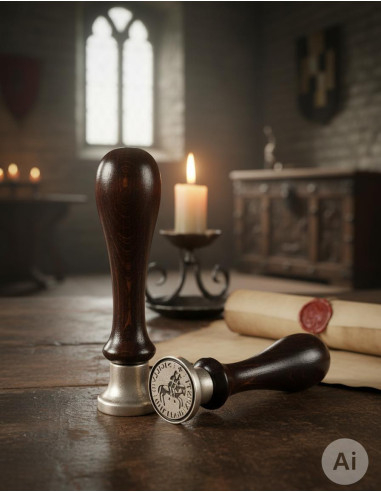 Mit einem Durchmesser von 25 mm ist dieser Siegelstempel ideal, um deine Dokumente auf elegante und markante Weise zu kennzeichnen. Außerdem enthält er eine 40-Gramm-Lackierwachsleiste, eine kleine Tasche und eine Geschenkbox, was ihn zum perfekten Geschenk für jeden Liebhaber der mittelalterlichen Geschichte macht.