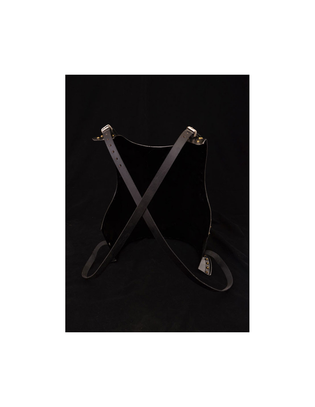 Eines der herausragenden Merkmale dieses Brustpanzers ist seine anpassbare Passform. Dank der beiden gekreuzten Lederriemen auf der Rückseite können Sie ihn mit den verstellbaren Schnallen ganz einfach an Ihre Größe anpassen. Dies sorgt für einen perfekten und bequemen Sitz, unabhängig von Ihrem Teint.