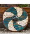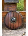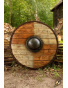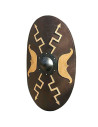 Der Rundschild aus Holz, verstärkt mit einem Metallnabel, war für die Verteidigung und den Angriff von entscheidender Bedeutung. Diese Stücke dienten nicht nur als Schutz, sie spiegelten auch das Können und Ansehen jedes Kriegers wider.