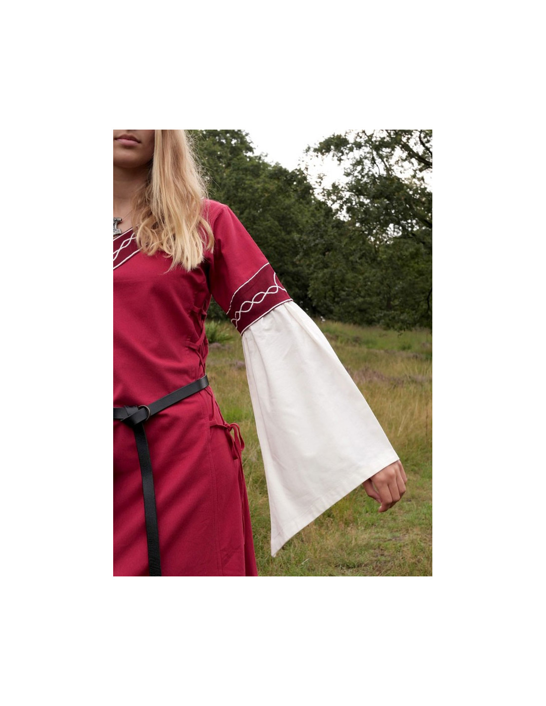 Suchen Sie ein mittelalterliches Kleid, das Sie ins 12. Jahrhundert entführt? Schau nicht weiter! Wir präsentieren Ihnen das mittelalterliche Kleid Alvina, erhältlich in den bezaubernden Farben Rot und Weiß. In diesem langen Kleid aus hochwertiger Baumwolle fühlen Sie sich wie eine echte mittelalterliche Dame.