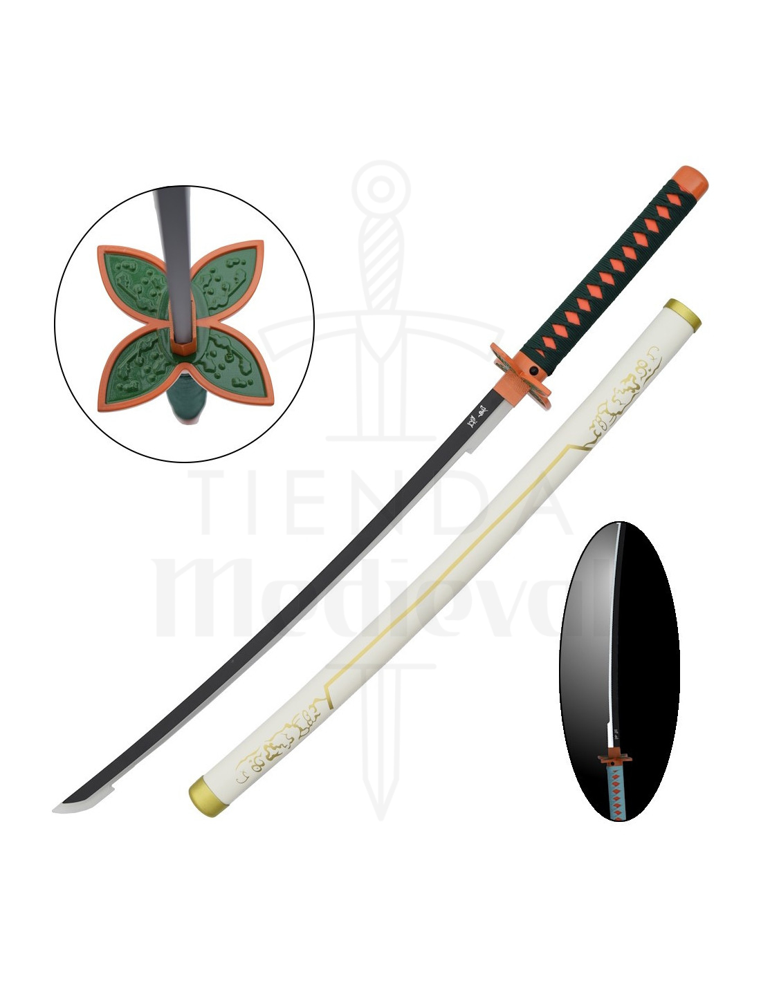Sieht aus wie ein echter Anime-Charakter mit diesem beeindruckenden dekorativen Katana, inspiriert von Shinobu Kocho aus 'Demon Slayer'! Sein einzigartiges Design verbindet die Eleganz des Bambus mit Details, die die Essenz des Universums Kimetsu no Yaiba einfangen, und macht dieses Stück zu einem unverzichtbaren Accessoire für Fans und Sammler.