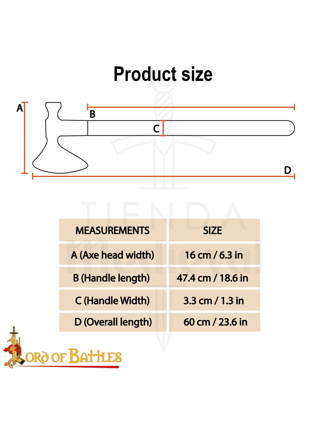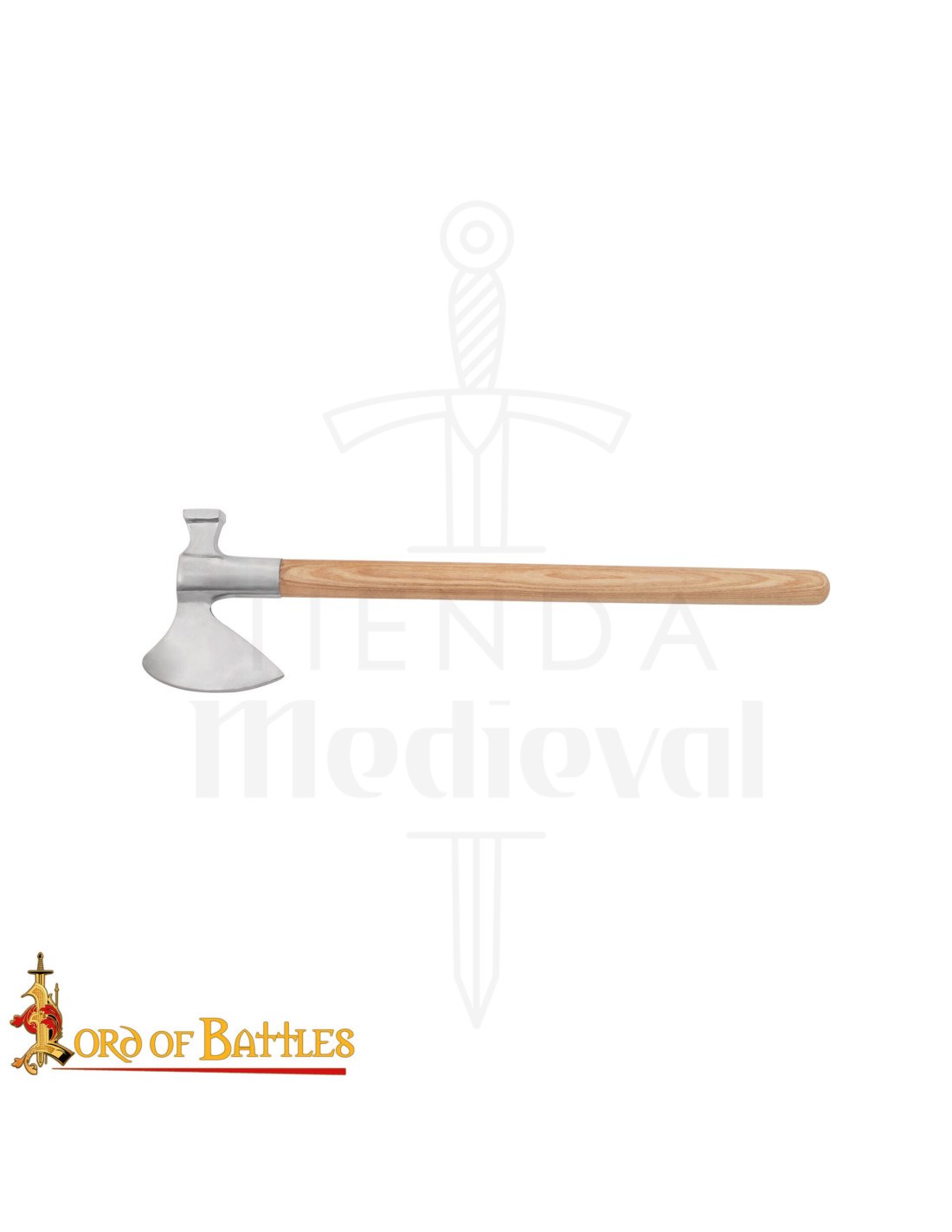 Die Mittelalterliche Axt aus Stahl mit Hammerkopf, Holzgriff bietet ein authentisches Erlebnis ohne Komplikationen, dank ihres handgeschmiedeten Kopfes aus Stahl, der Widerstandsfähigkeit und Charakter verleiht. Ihre gebogene Kante ermöglicht präzise und effektive Schnitte, während die flache gegenüberliegende Seite als Hammer für kräftige Schläge fungiert. So hast du echte Vielseitigkeit für verschiedene Anwendungen, von einer Szene auf der Bühne bis zu einer historischen Nachstellung.