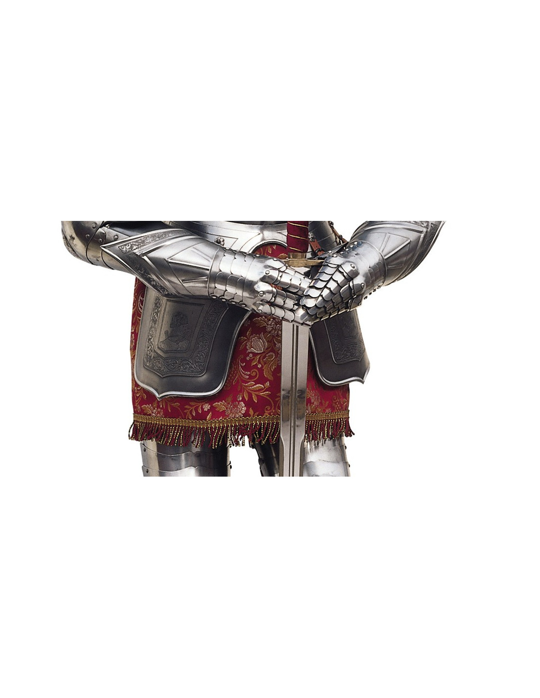 Darüber hinaus wurde diese Rüstung in Toledo, Spanien, hergestellt, das für seine Tradition in der Herstellung hochwertiger Rüstungen bekannt ist. Mit ihrem silbernen Design und den detaillierten Gravuren bietet Ihnen diese Rüstung nicht nur Schutz, sondern lässt Sie auch auf dem Schlachtfeld elegant und kultiviert aussehen.