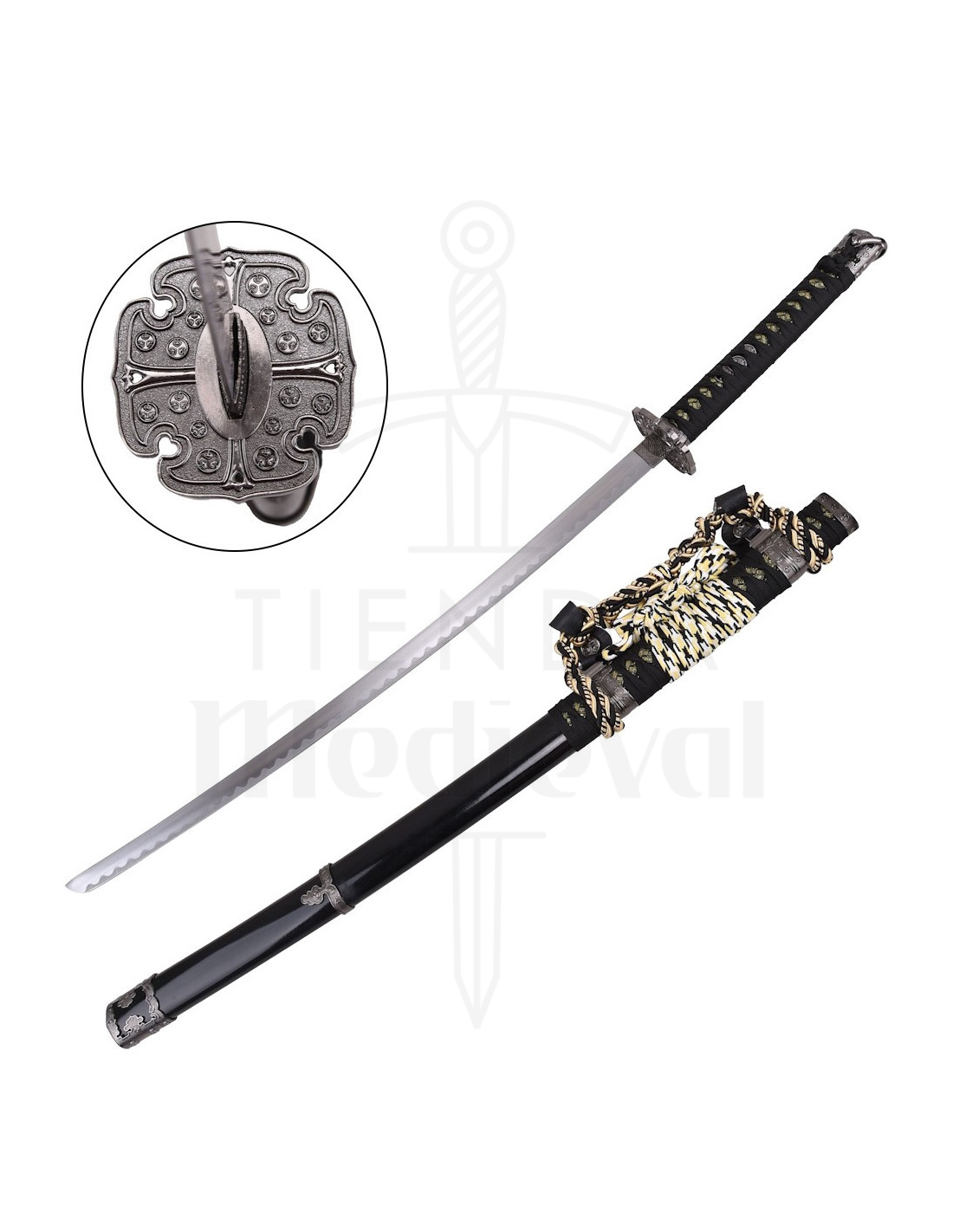 Wenn Sie eine Dekorative traditionelle japanische Katana in Schwarz mit silbernen Details kaufen möchten, finden Sie in diesem Modell eine Fusion aus traditioneller Ästhetik und zeitgenössischer Präsenz, ideal für Sammler, Dekorateure oder als ausgefallenes Geschenk.