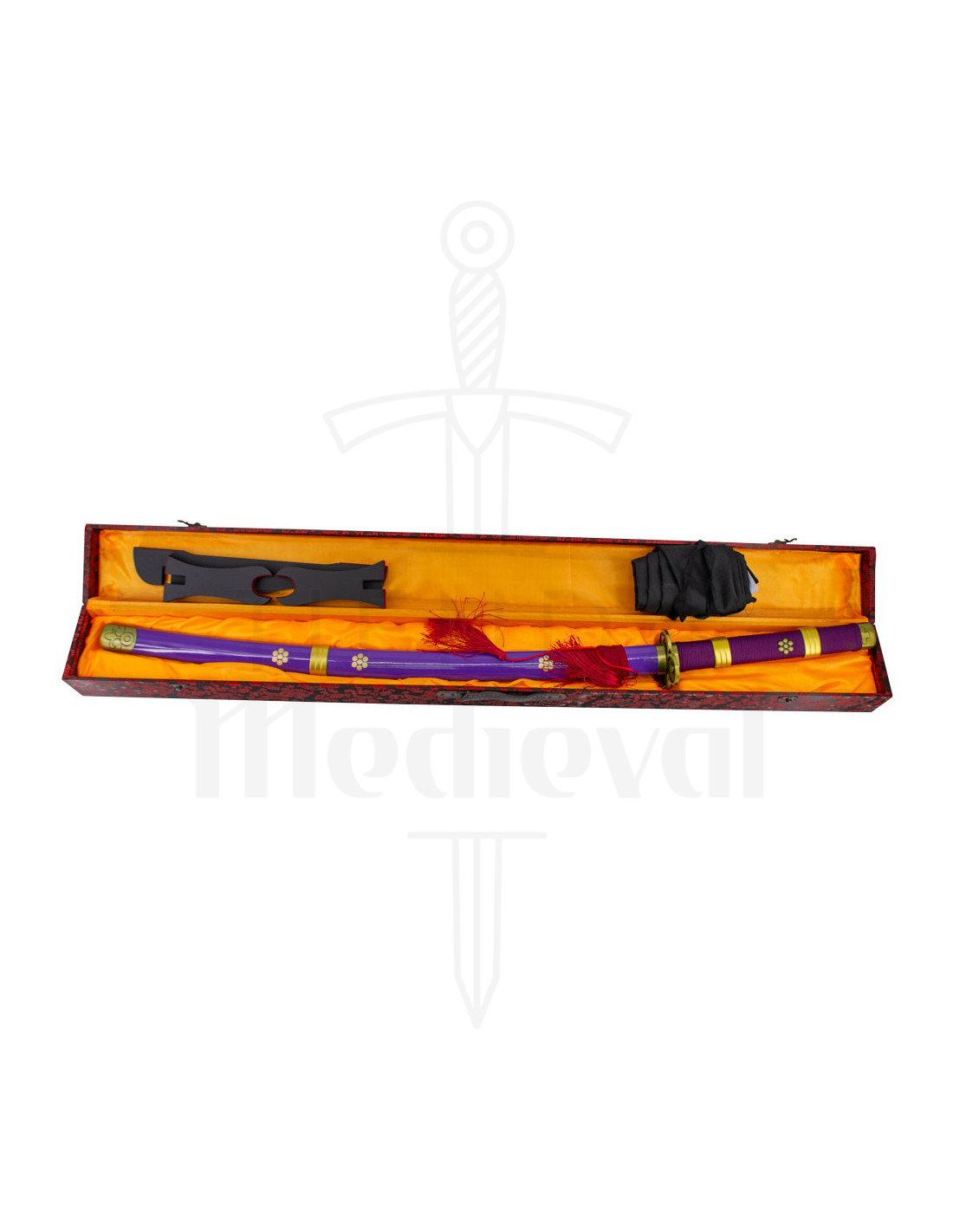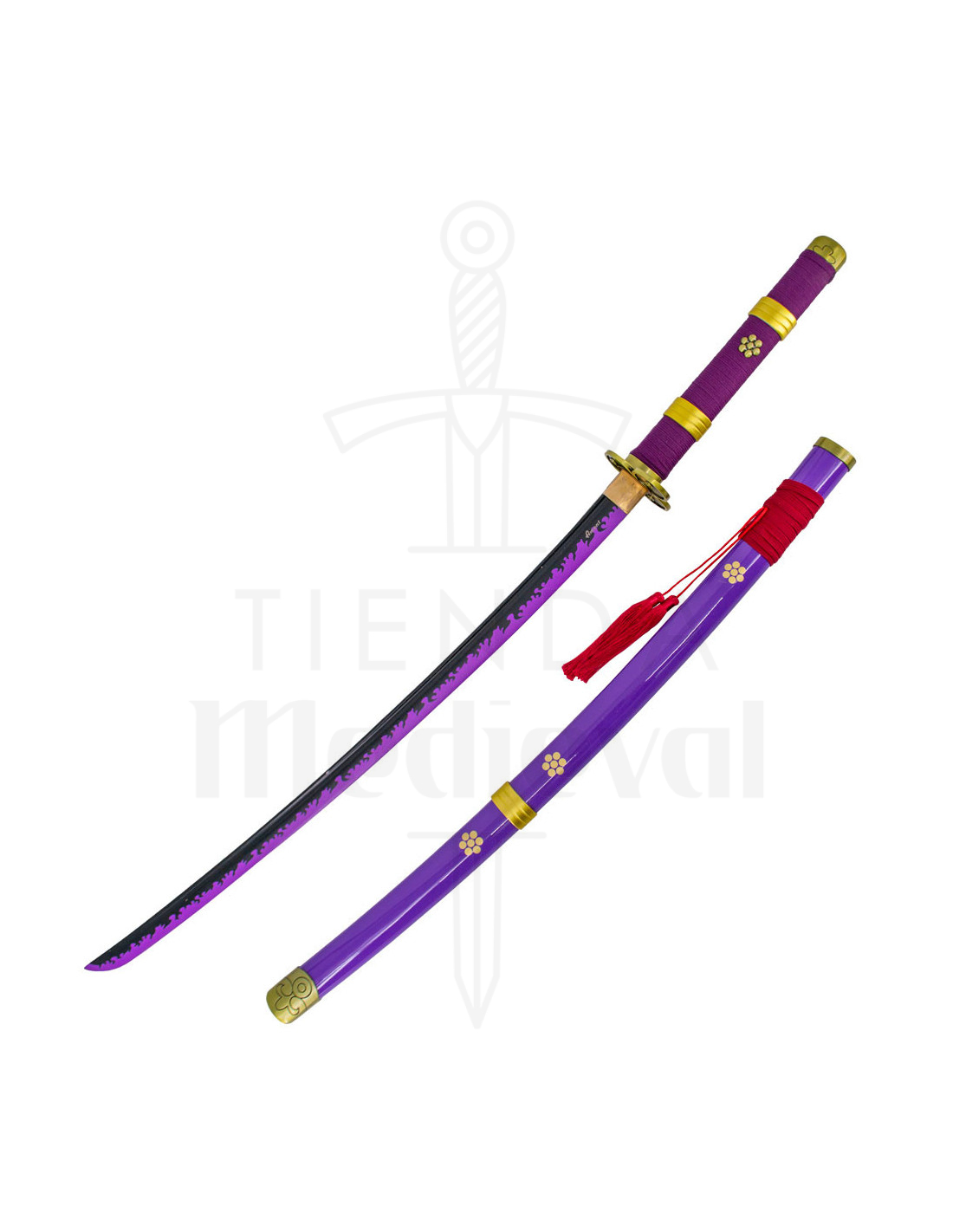 Holen Sie sich die beeindruckende, funktionale lilafarbene Enma-Katana von Zoro aus One Piece! Diese inoffizielle Nachbildung ist ein absolutes Muss für jeden Fan des berühmten Schwertkämpfers Roronoa Zoro und der Welt von One Piece.