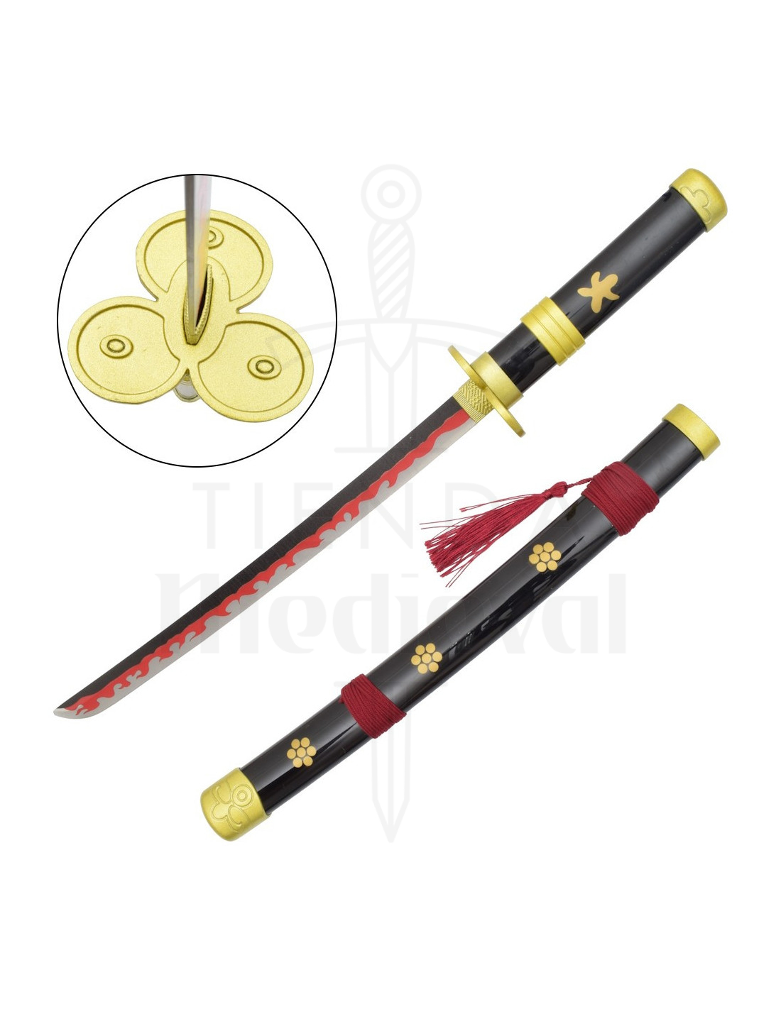 - Saya- und Kunststoffgriff: Leicht und ästhetisch dem Anime-Stil treu, sorgen sie für ein authentisches Aussehen und sind sicher für die Präsentation.