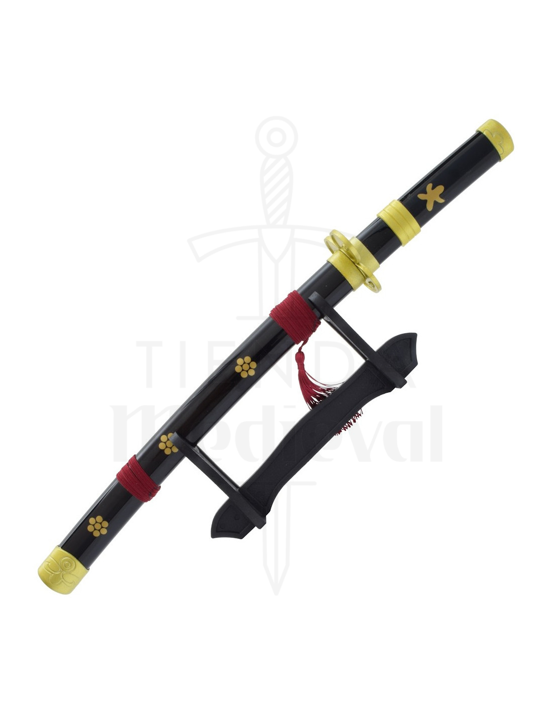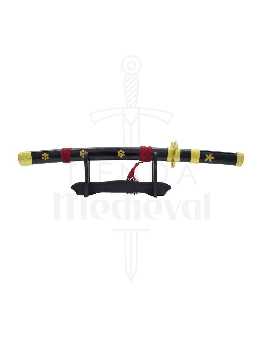 Entdecken Sie Zoros schwarzes Enma-Mini-Katana, inspiriert vom legendären Schwert des tapferen Kriegers aus One Piece. Diese dekorative Nachbildung fängt die Essenz des Animes mit sorgfältig gestalteten Details ein und ist ideal für leidenschaftliche Fans der Serie, die ein Stück von Zoros Abenteuer in ihr eigenes Zuhause bringen möchten.